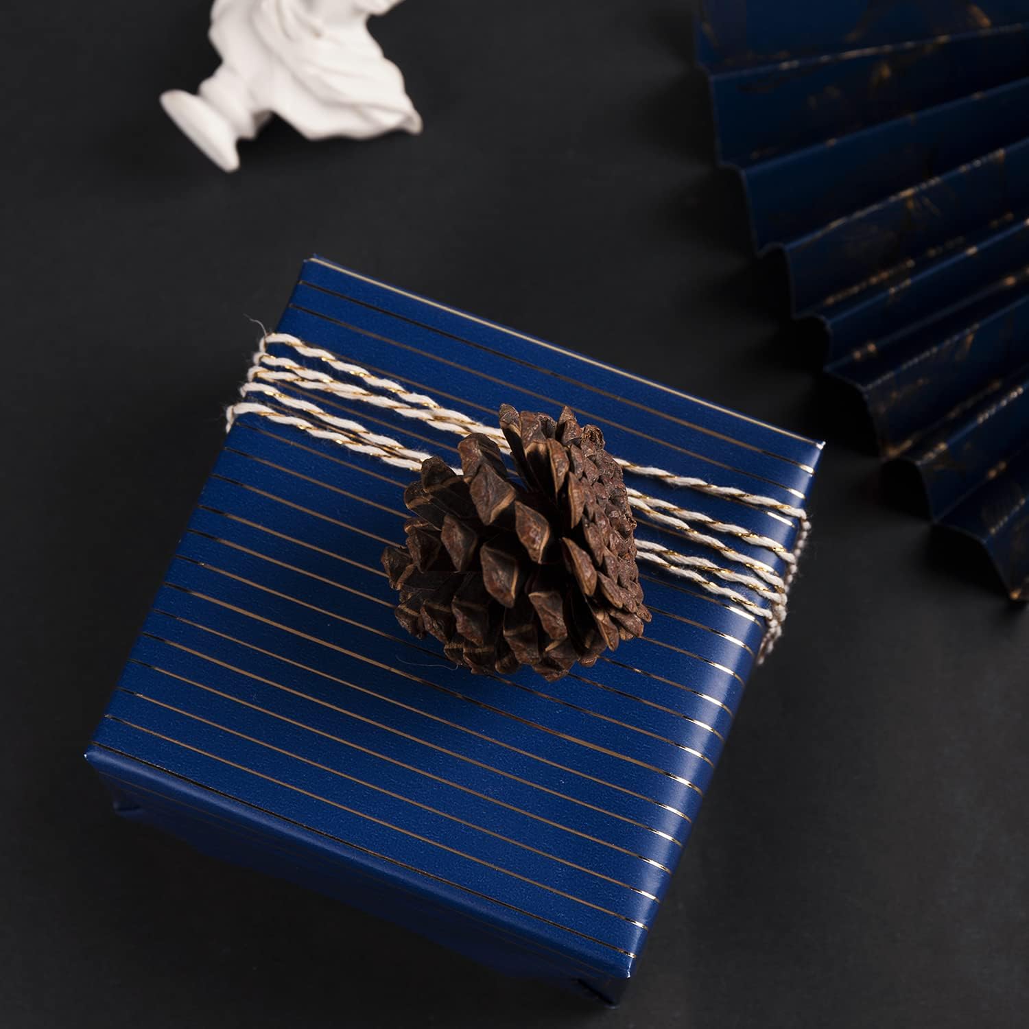 PACKAGE: The package includes 4 rolls navy and gold wrapping paper (30″x120″) with gridlines on the reverse; 9 are 3″ gift bows(3 each of metallic royal blue, metallic gold, metallic silver), 18 are 2.36″x2.36″ gift tags (3 designs, 6 each of design), 5 sheets gift stickers, 2 ribbons (2 Colors, 10M/Color), the coordinated set can meet your gift wrapping needs