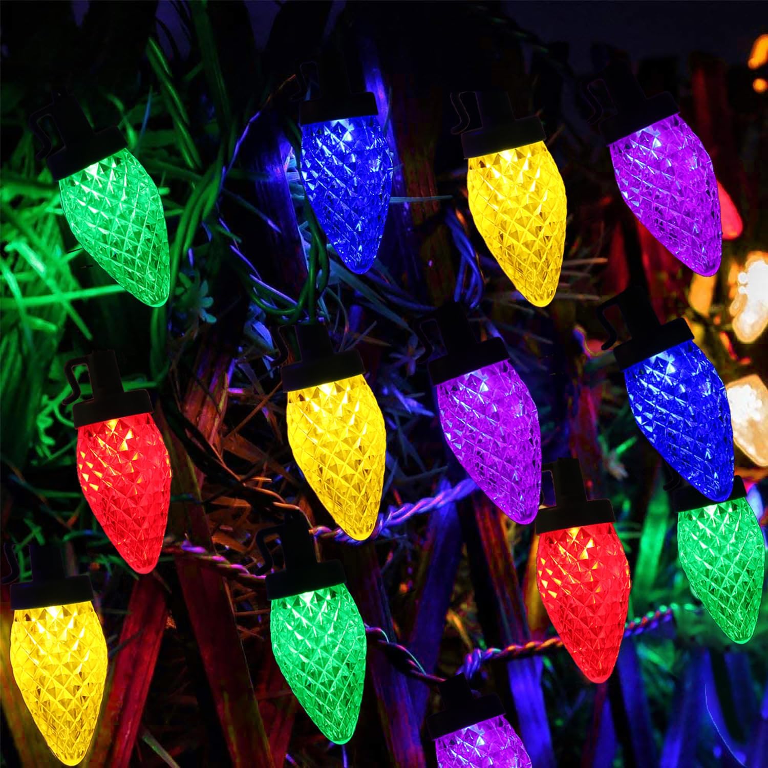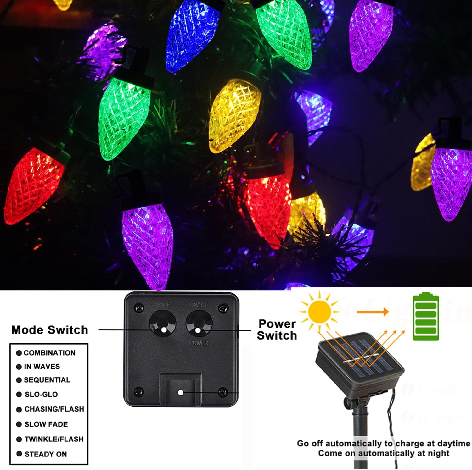 C9 Solar Christmas Lights: Solar Powered, C9 large bulb, brilliant colored lights, 8 lighting modes with memory function, waterproof. Visible and eye-catching outdoor Christmas solar lights