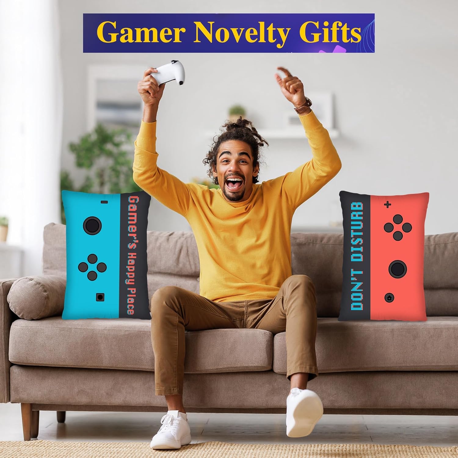 - The set includes cozy gamer-themed socks to keep you comfortable during those marathon gaming sessions, plus a trendy throw pillow cover that adds a perfect gaming accent to any room.