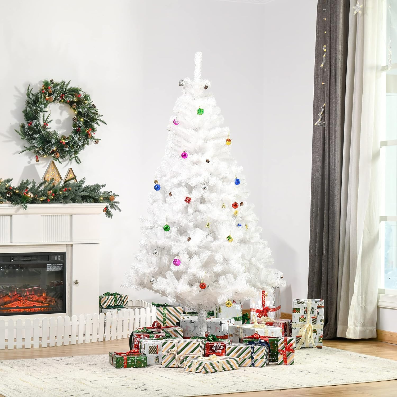 This 5.9ft Artificial White Christmas Tree is an excellent piece for your Living room space. With 930 branches, comes with colorful decoration ornaments such as cones, boxes, bells and drums you will surely feel festive during the holiday season and not to mention this Christmas tree is fire and heatproof!