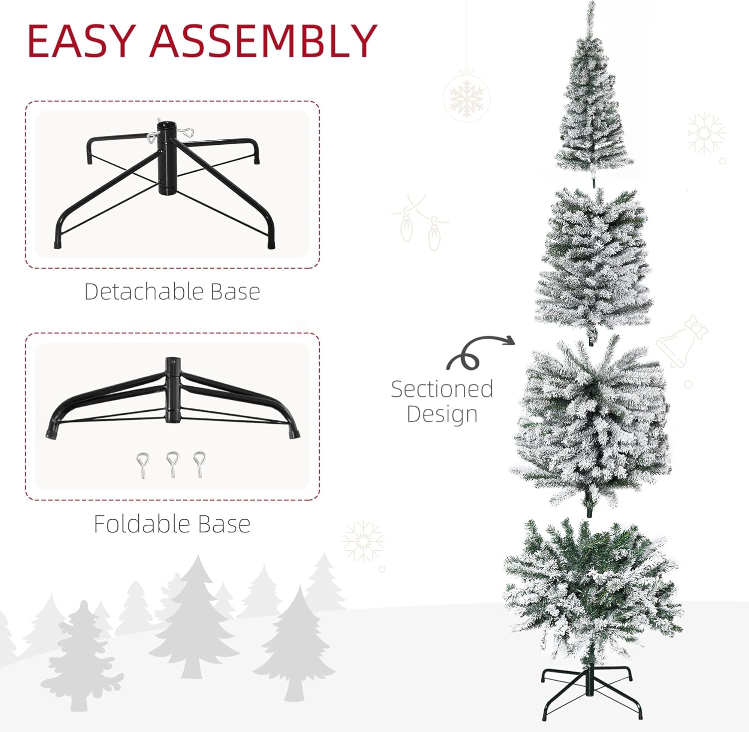 HOMCOM 7.5ft Snow Flocked Pencil Christmas Tree, Artificial Slim Xmas Tree with Realistic Branch Tips, Folding Metal Stand, Green