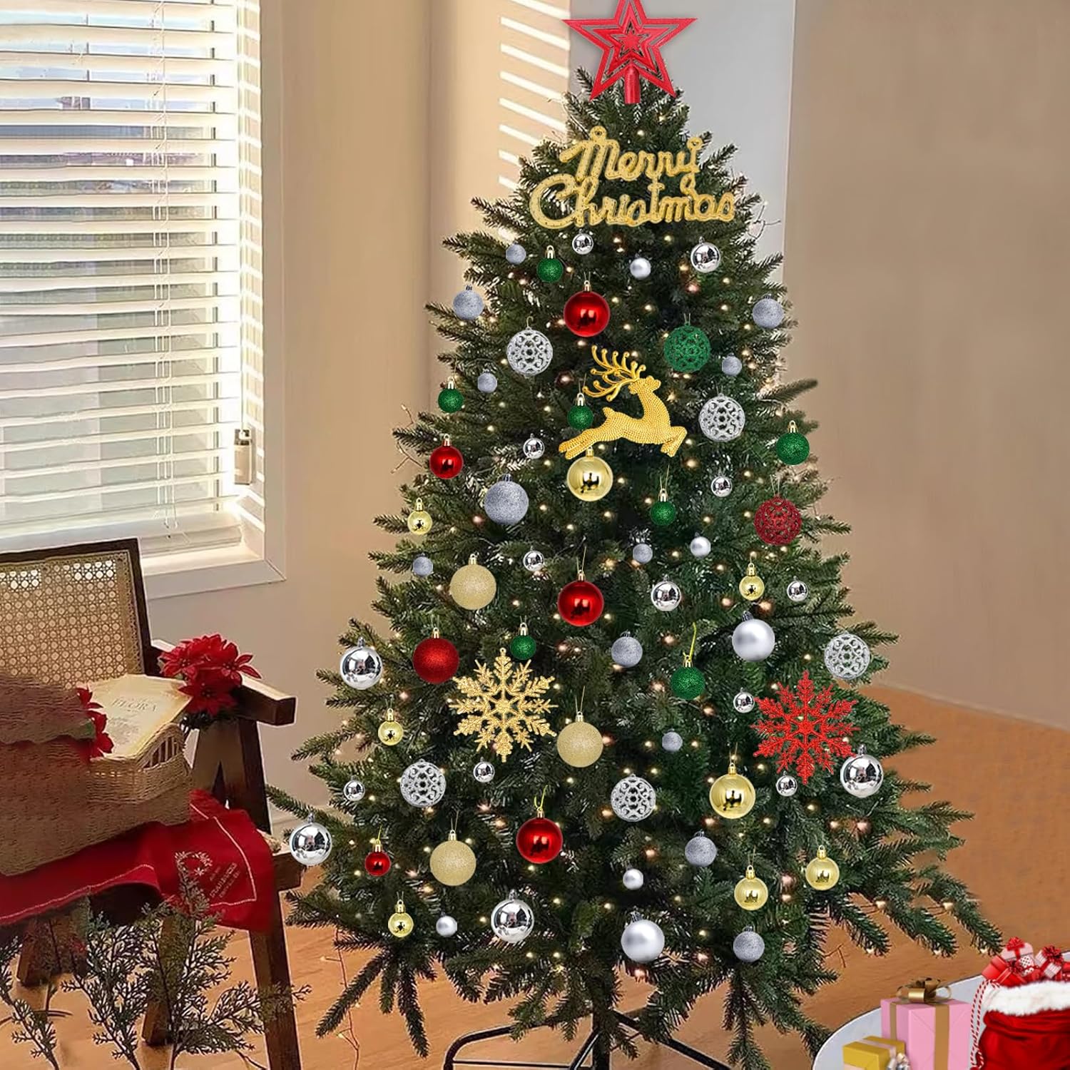 Exquisite Christmas Decorations: The baubles set includes 105 Christmas ornaments, each Christmas ball with a removable string for hanging. This complete set provides everything you need for Christmas tree decorations