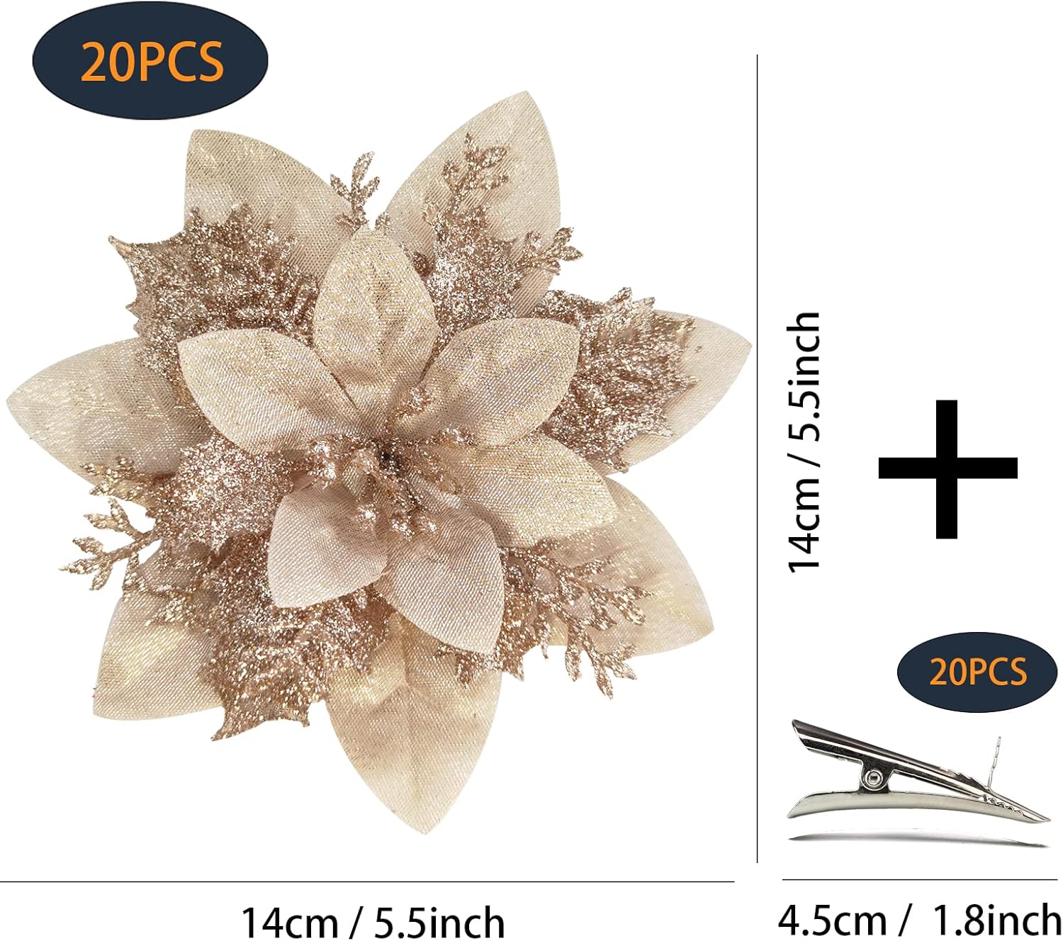 EASY TO DECORATE: We provide 20pcs 4.5cm clips which are bigger and easier to decorate Christmas artificial flowers. Insert the base of the flower into the tip of the clip. You could decorate the MIKAILE artificial Christmas flowers in any place as you like. Never worry about not finding the accessories to fix them.