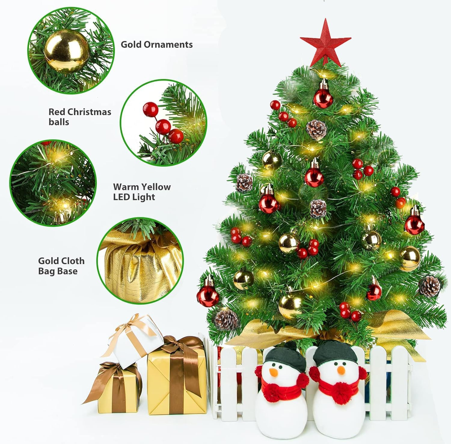 Christmas Table Decor – Mini tabletop Christmas tree can be used in Christmas, Xmas Party, wedding decoration, dining room, living room, offices, table, mantel or as a beautiful gift for your friends. It is great for indoor or outdoor decoration