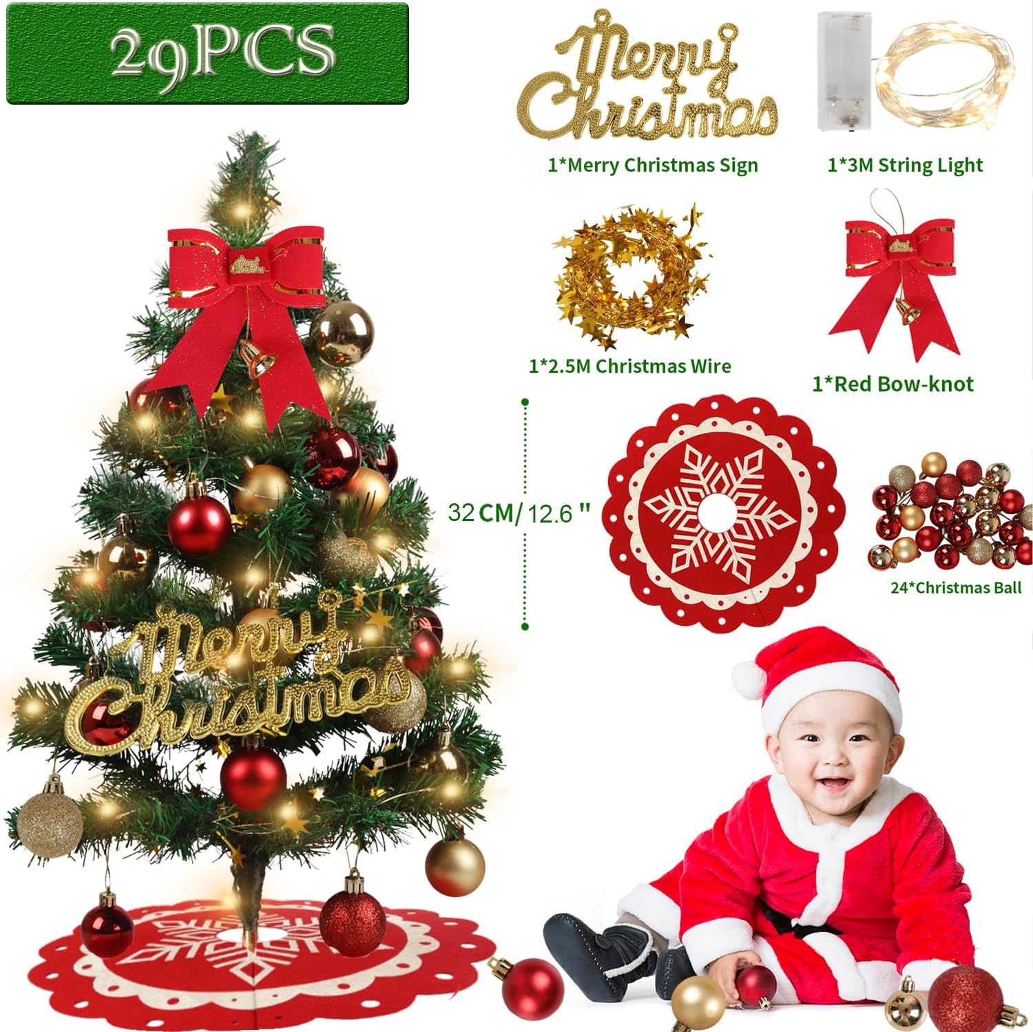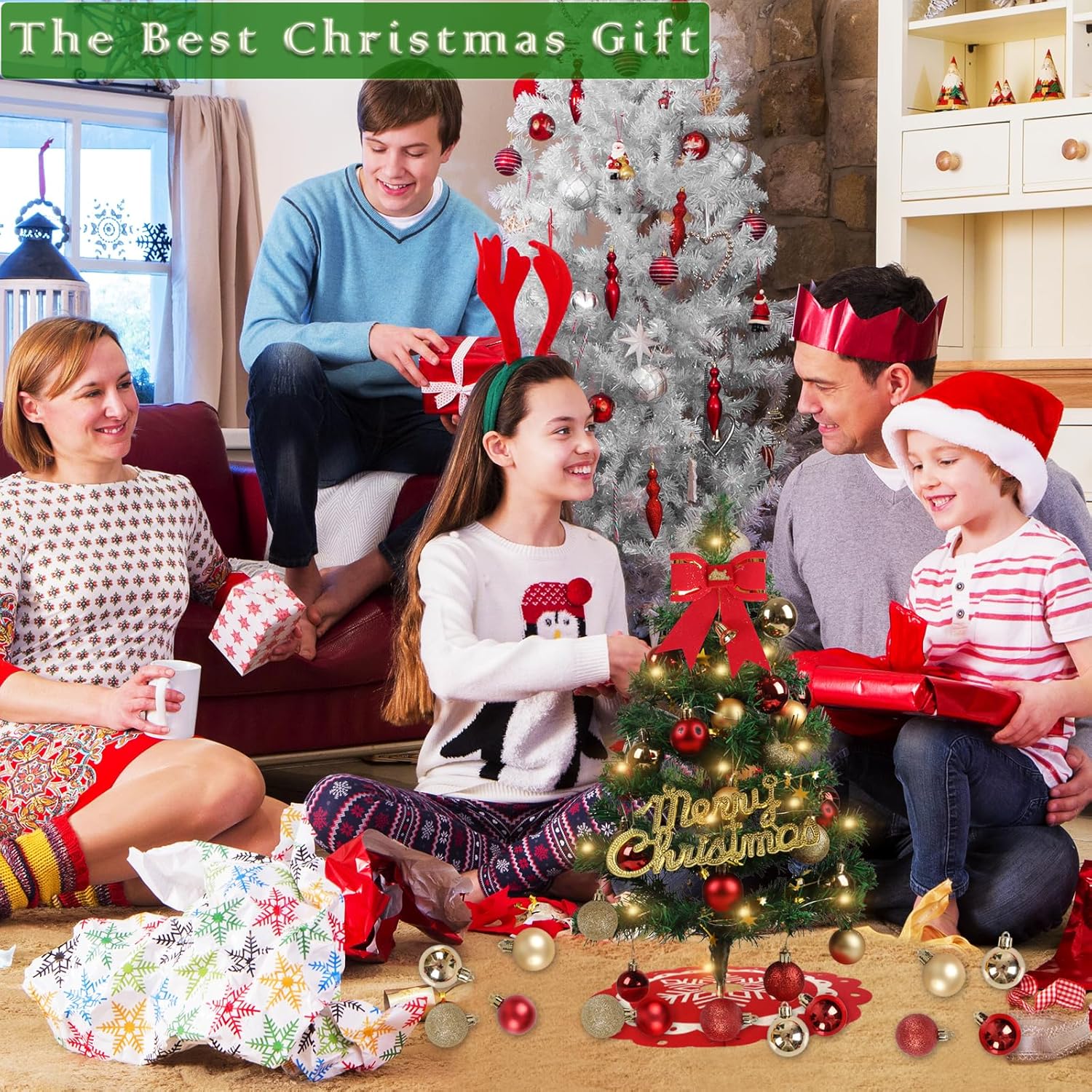 🌲Mini Table Christmas Tree – This mini Christmas tree about 60cm tall and equipped with glittering color ornaments, perfect as Christmas decorations for your home, bedroom, kitchen table, office, school or even shop window, create the holiday atmosphere.But it can also be given to children, friends or family, bringing fun and surprises.