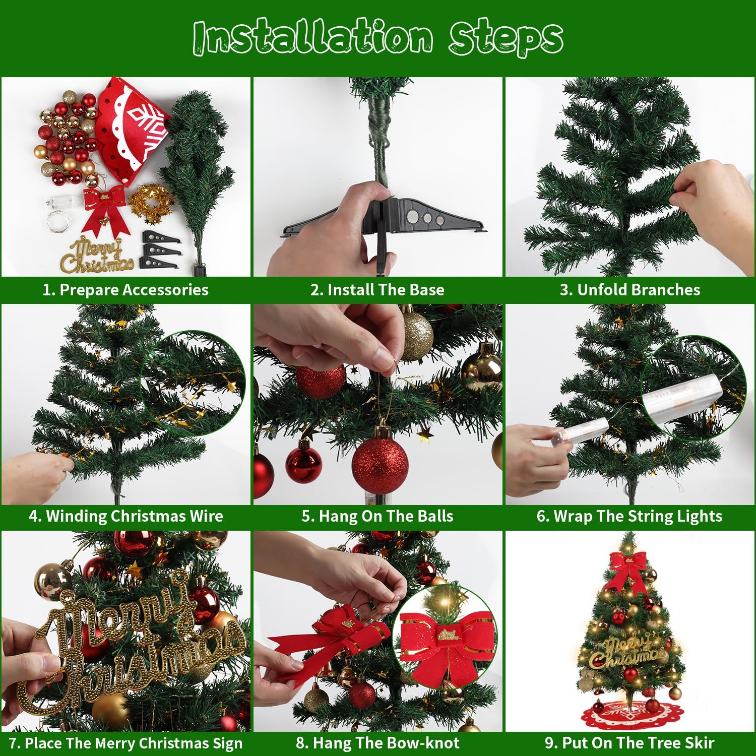 DIY Christmas Tree Ornaments: The Fohil 24-inch mini Christmas tree is perfect for adding Christmas charm to any spacePowered by 3 AA batteries (not included), this tabletop Christmas tree lights up your home on ChristmasInteractive Assembly Fun: Assembling this artificial Christmas tree from is an engaging activity that brings together family and friendsThis mini Christmas tree not only adds a festive touch to your space but also provides a fun DIY decorating activity