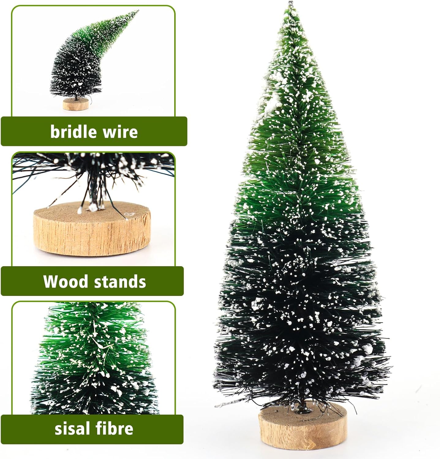 Premium Material: Bottle brush christmas trees is made of sisal silk and plastic with durable wooden base, easy to stand .The small Christmas tree is bendable and soft , suitable for create a snow white party decorations or vintage Christmas decorations.