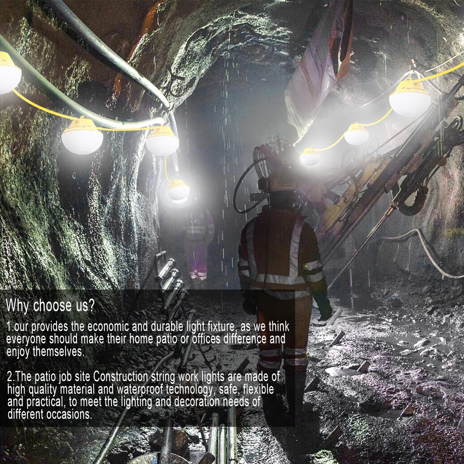 【Super brightness】The work string lights 50 ft including 5 LED work lights 75 W 7500 lumens 5000K daylight makes the construction string lights illuminate larger areas and more light