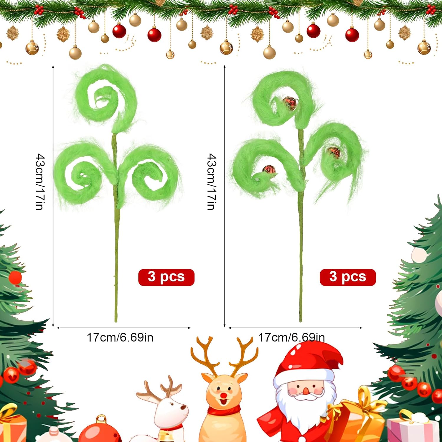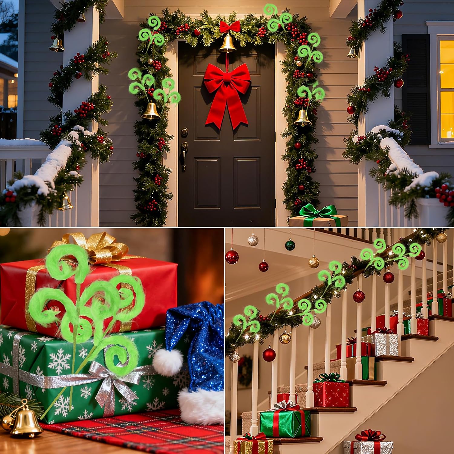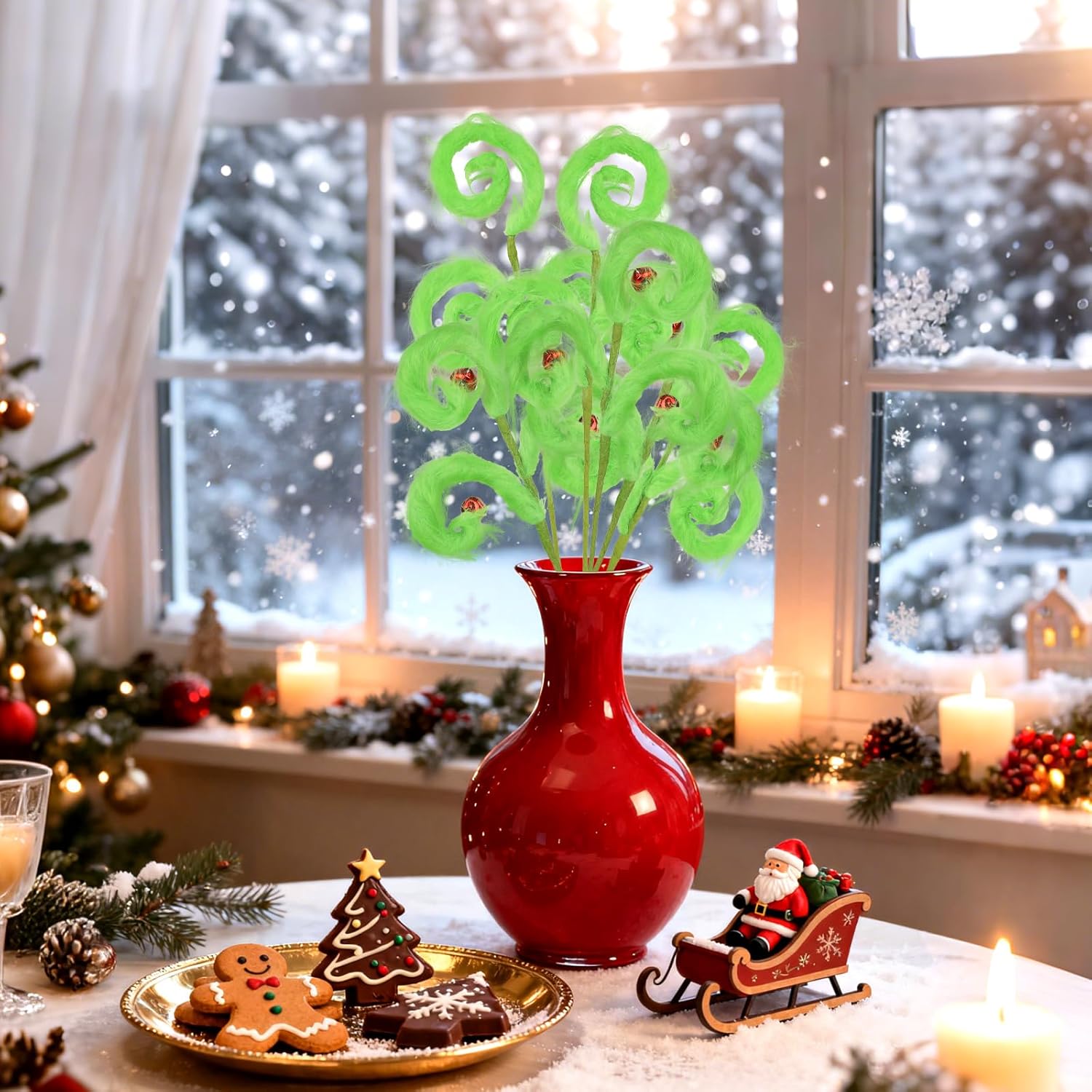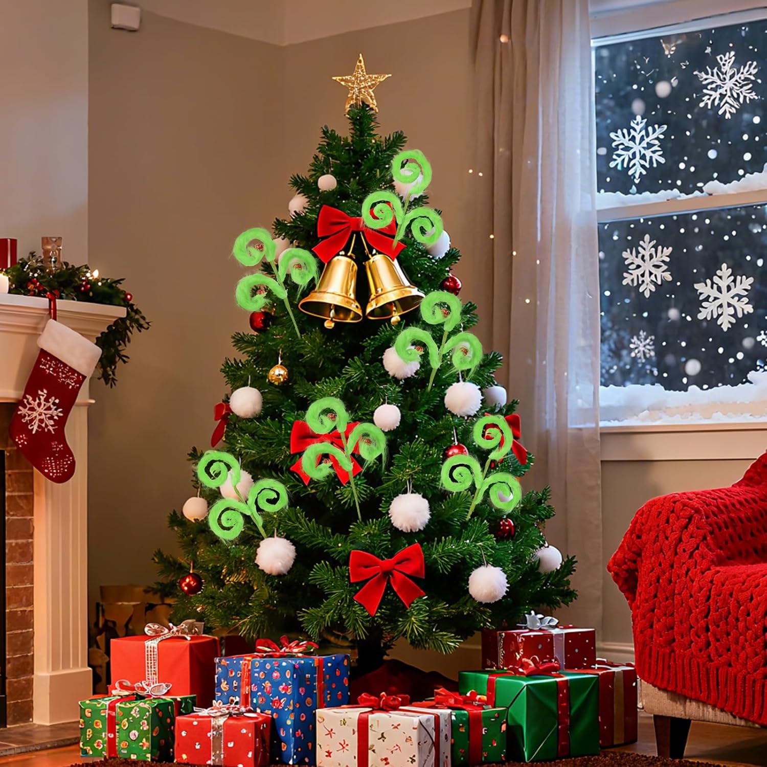 Festive Design: These Christmas tree decorations feature vibrant green furry stems with spiral curly branches. The classic green color combination embodies traditional Christmas aesthetics while adding texture and visual interest to your holiday decor.