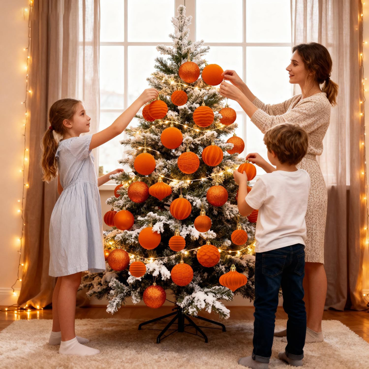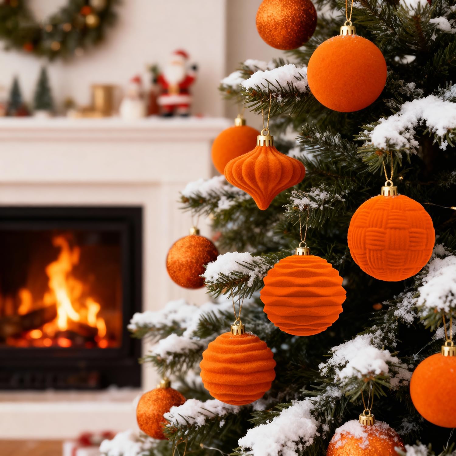 Unique Velvet Texture: Our ornaments stand out with their unique velvet texture and classic orange fall hues. Includes 18pcs small(1.57″/40mm), 12pcs medium(2.36″/60mm) and 6pcs large(3.16″/80mm)ball ornaments, the subtle elegance of these pieces makes them a versatile choice for any holiday theme.