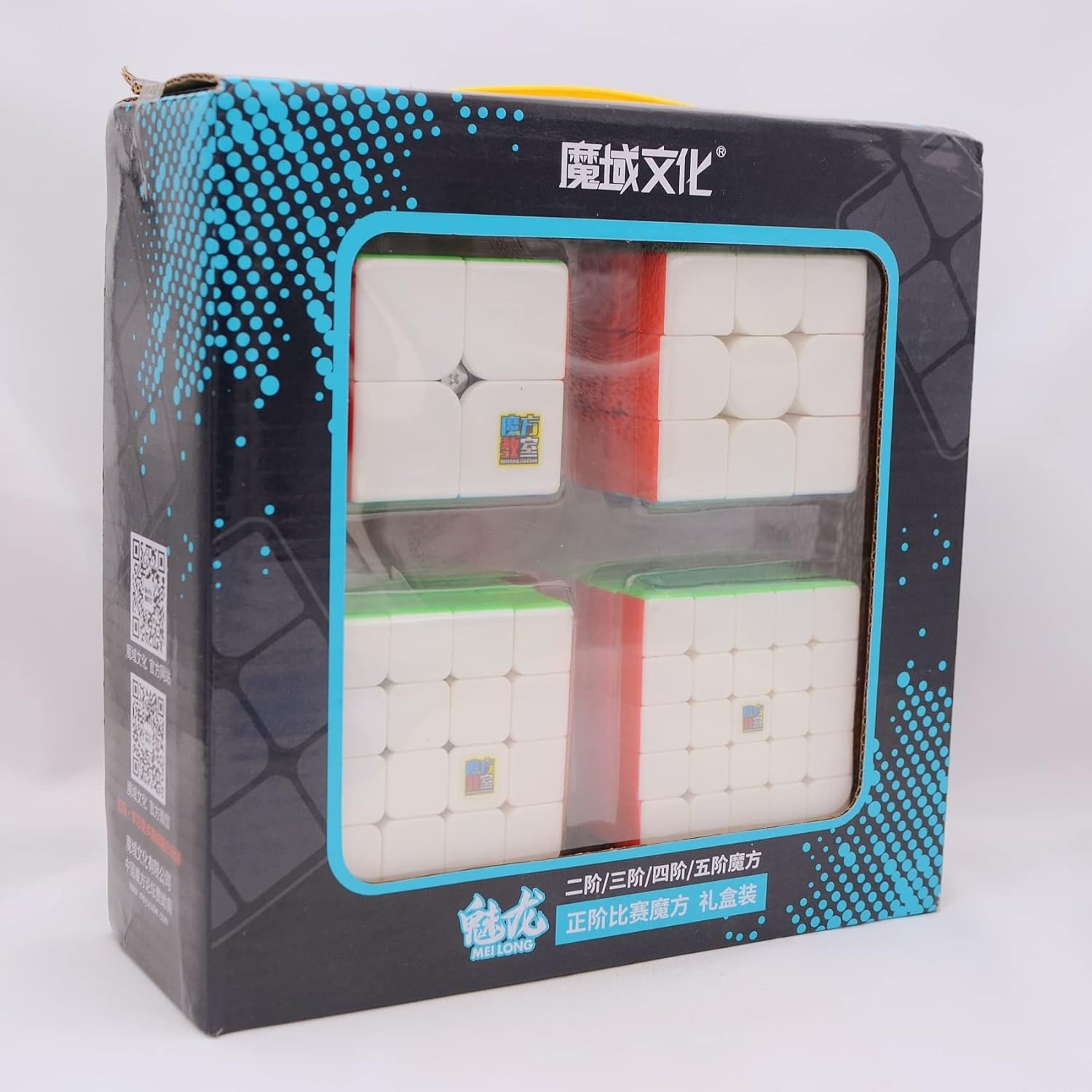 The Moyu Meilong 2×2 & 3×3 & 4×4 & 5×5 Speedcubing Bundle are the latest item from Moyu/MoFangJiaoshi. It features a frosted, scratch-resistant surface, vibrant stickerless colors, and symmetrical positioning technology — all at a very economical