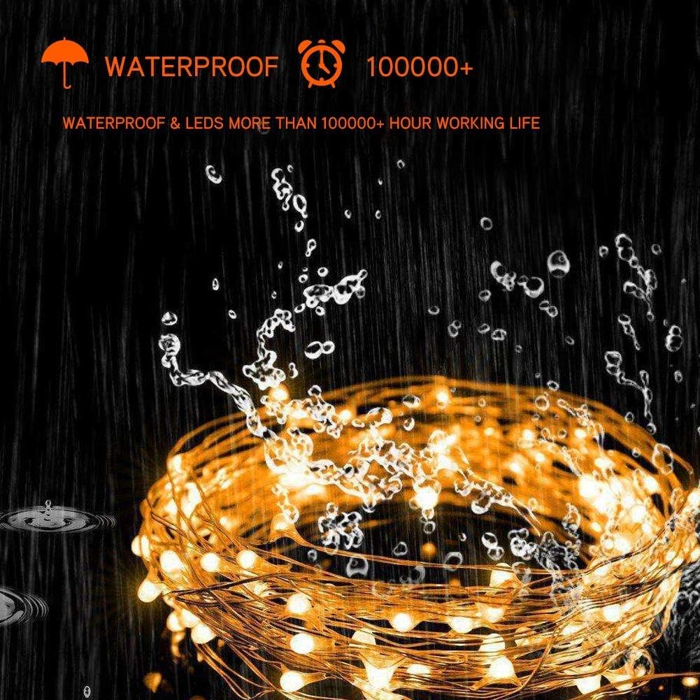 💡【Waterproof String Lights for Indoor & Outdoor Use】Light wires are Water-resistant, so there are no problem to use them in the rain. NOTE: the lights port is not waterproof, so do not expose it to water. Excellent mood lighting for indoor or outdoor applications. Use these fabulous lights to decorate! Let your event or decor shine with beautiful white light.