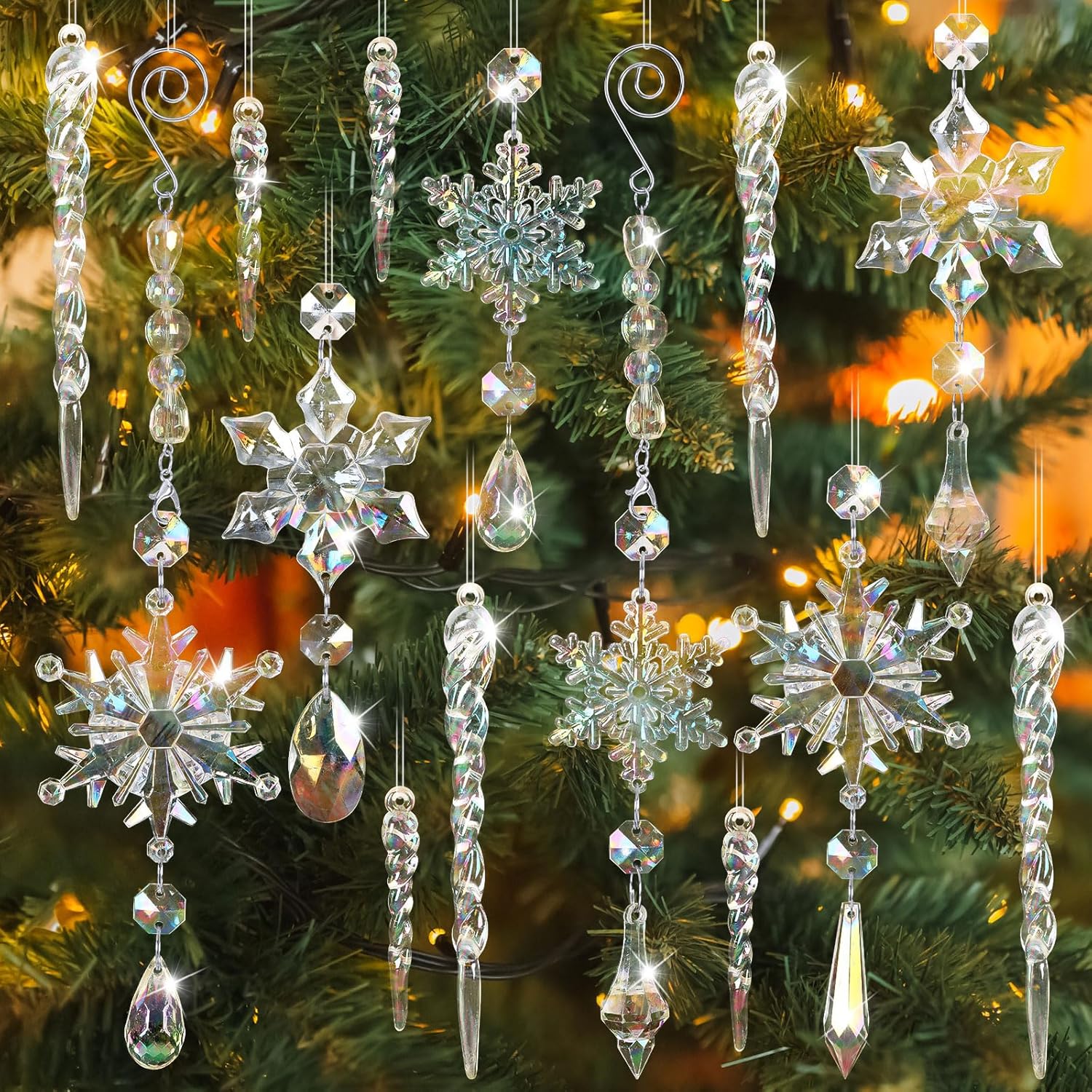 Crystal Decoration Set: 16-piece acrylic Christmas ornaments. There are different styles of crystal snowflake ornaments and bright icicles. Pastel Christmas ornaments can well capture the light and shine under the light of the Christmas tree, adding unique charm to your Christmas tree and instantly creating a romantic and dreamy holiday atmosphere