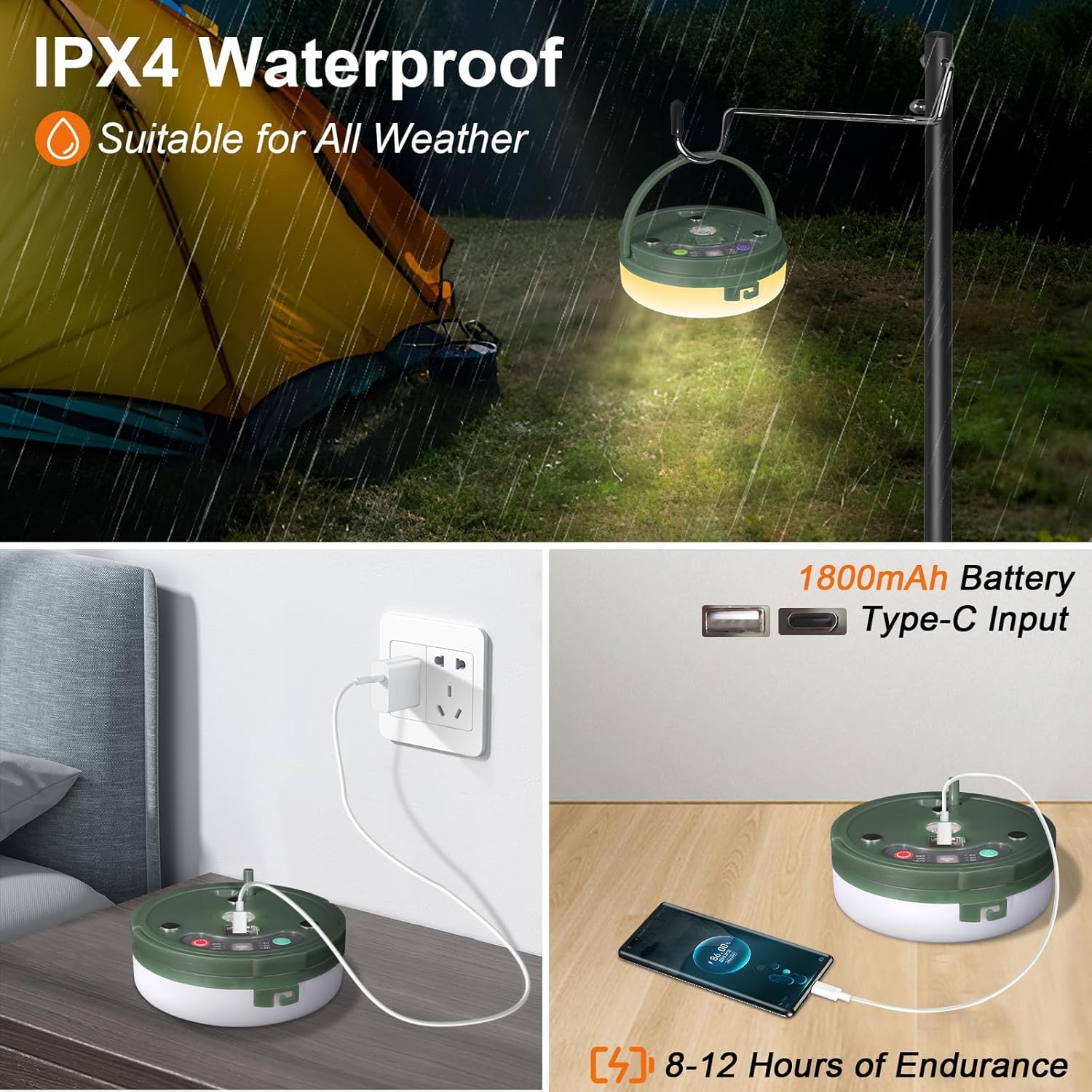 ⭐【Waterproof】Featuring waterproof design and a durable light strip, the camping lights are designed to withstand the elements.
