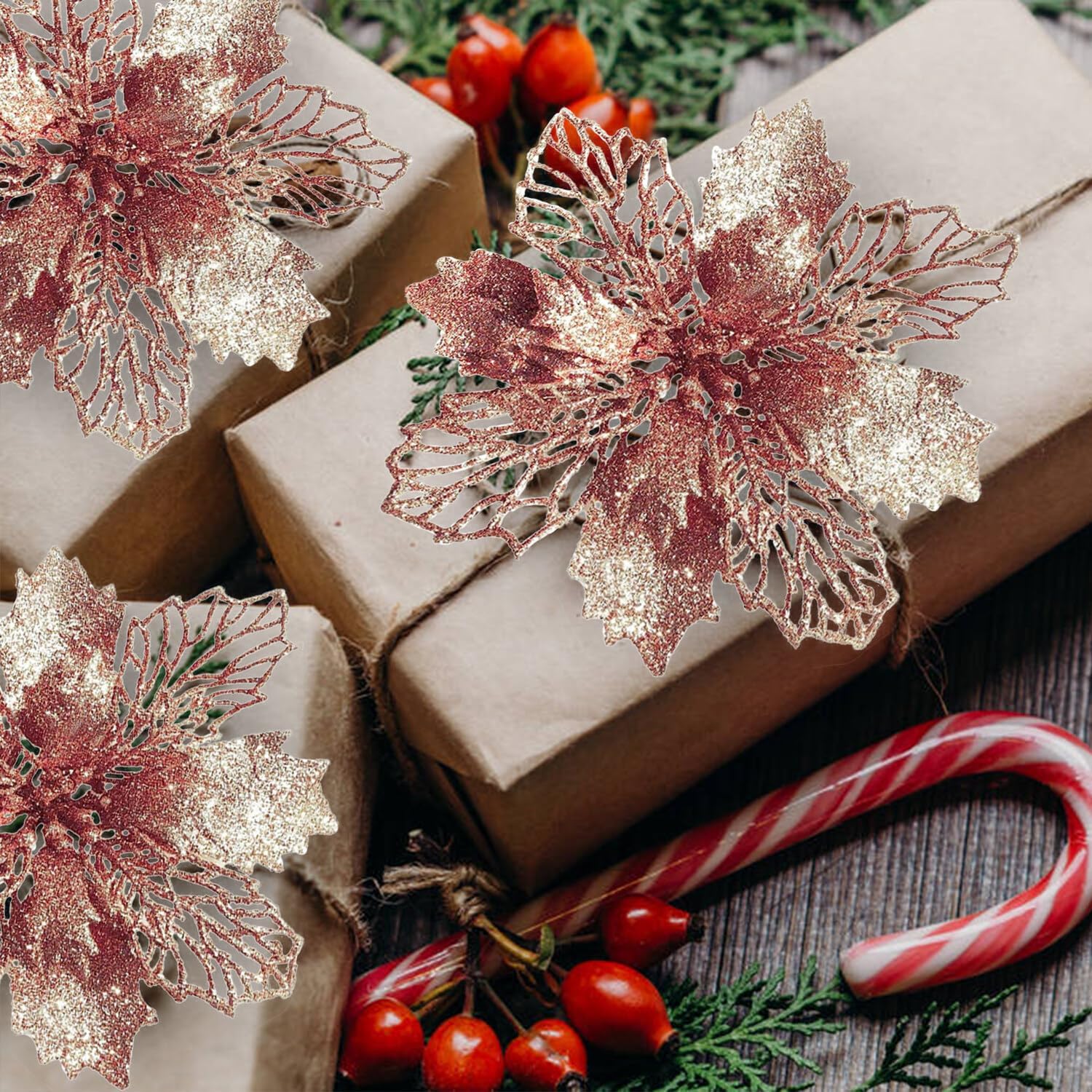 ❀ Perfect Decorations – Our glitter artificial poinsettia flowers is perfect artificial flowers for Christmas decoration, they are never wither, Suitable decoration for weddings place, Christmas tree, Christmas Wreath, fireplace, Christmas gift or other Christmas home and New Year decoration.