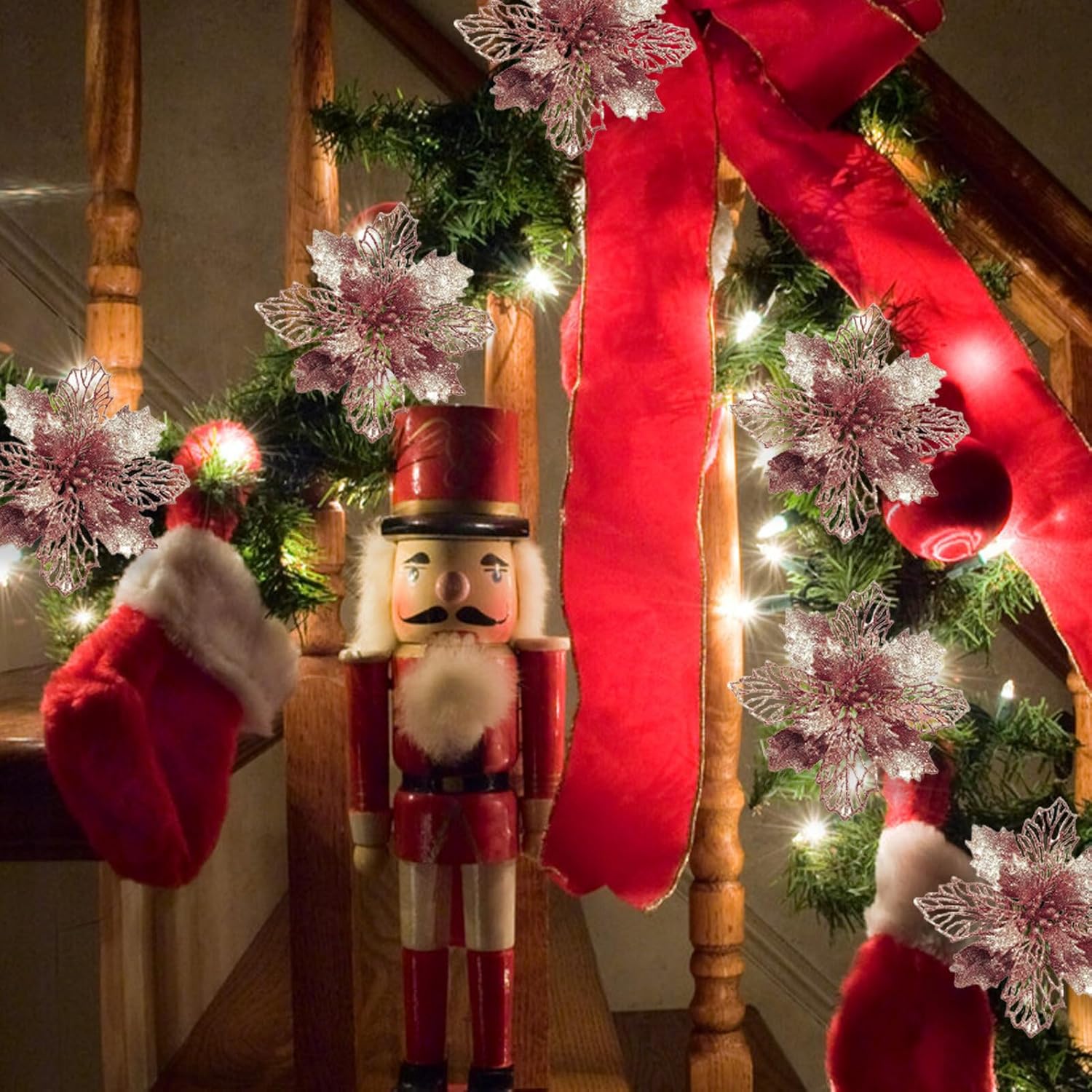 ❀Good Quality – Our glitter artificial poinsettia flowers made of high quality and soft plastic material, glitter flower can better decorations your Christmas garland and Christmas tree ornaments.