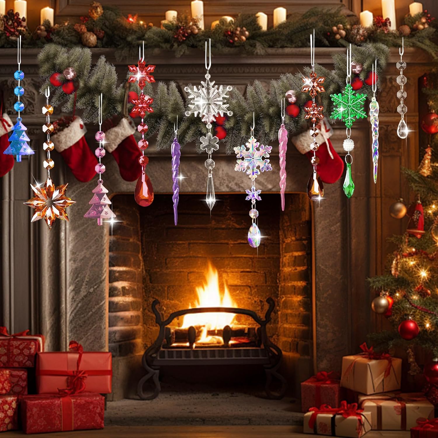 ✨【PERFECT WINTER DECORATION】Elevate your Christmas tree with our acrylic crystal pendant ornaments. The lightweight design won’t weigh down branches, and they beautifully capture and reflect light. Let them sparkle alongside your tree lights, adding a captivating touch to your holiday centerpiece