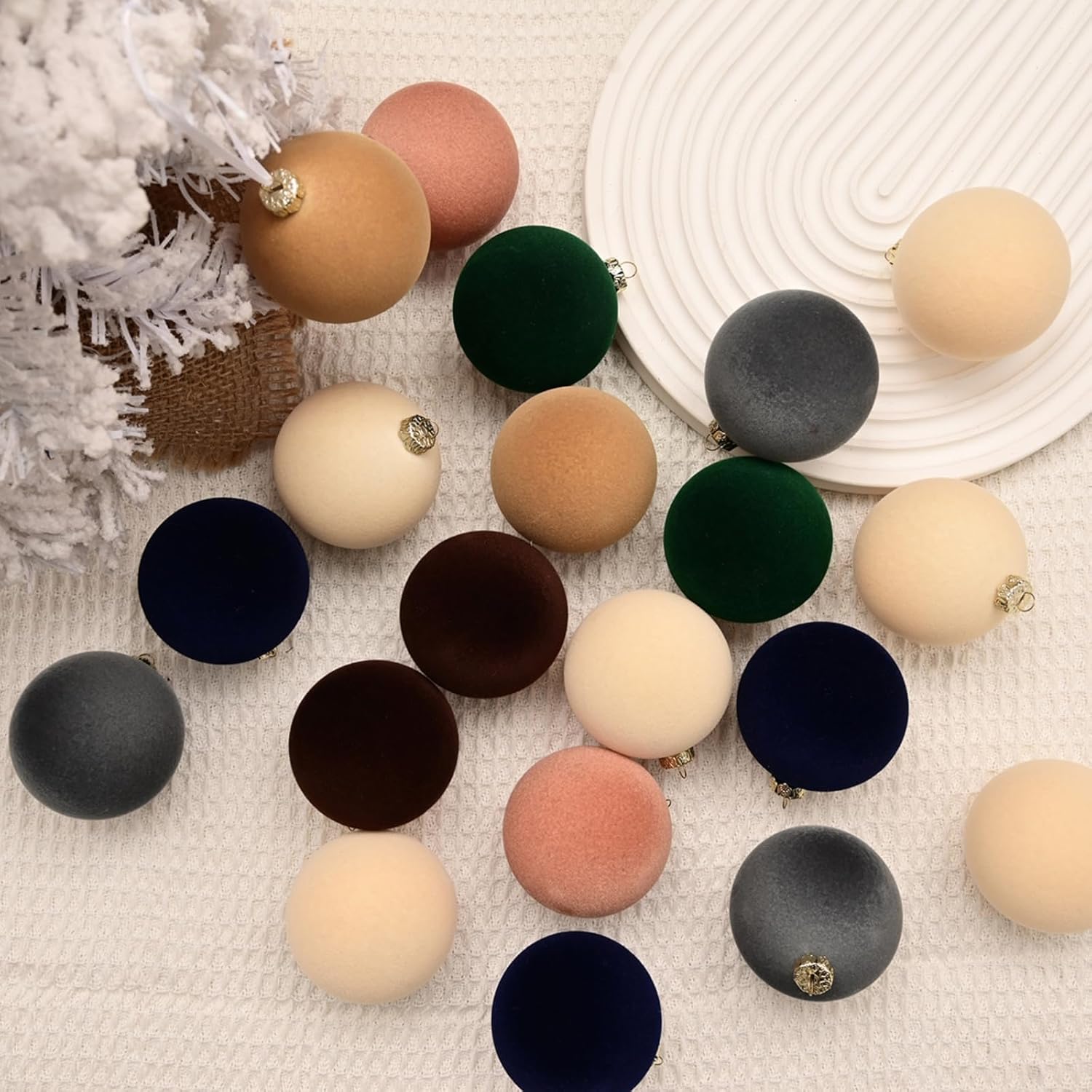 【Premium Material】Velvet ornaments are made of plastic material, which is strong and long-lasting, not easy to break, shatterproof. High quality velvet wraps around the Christmas balls, add charming to your Christmas tree.