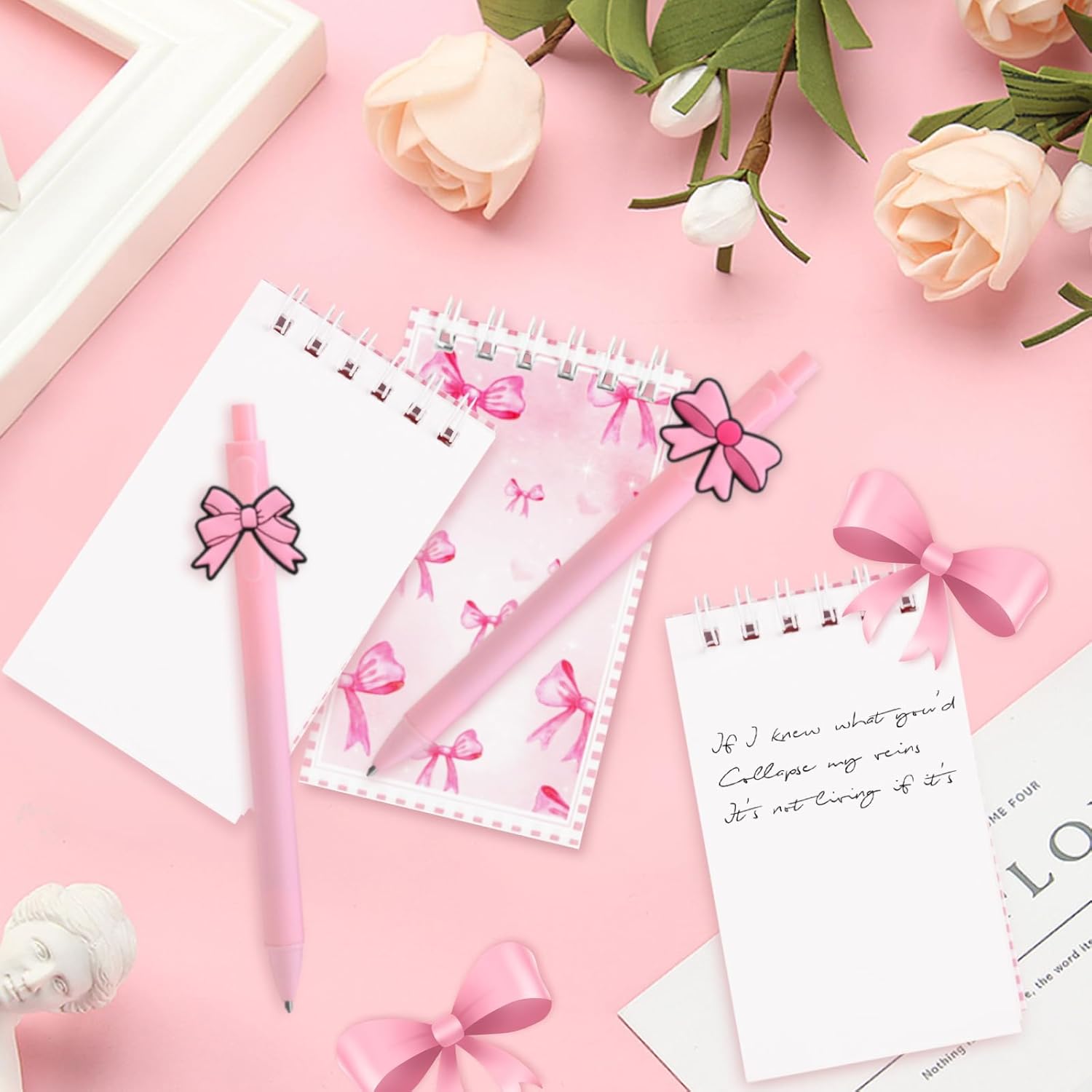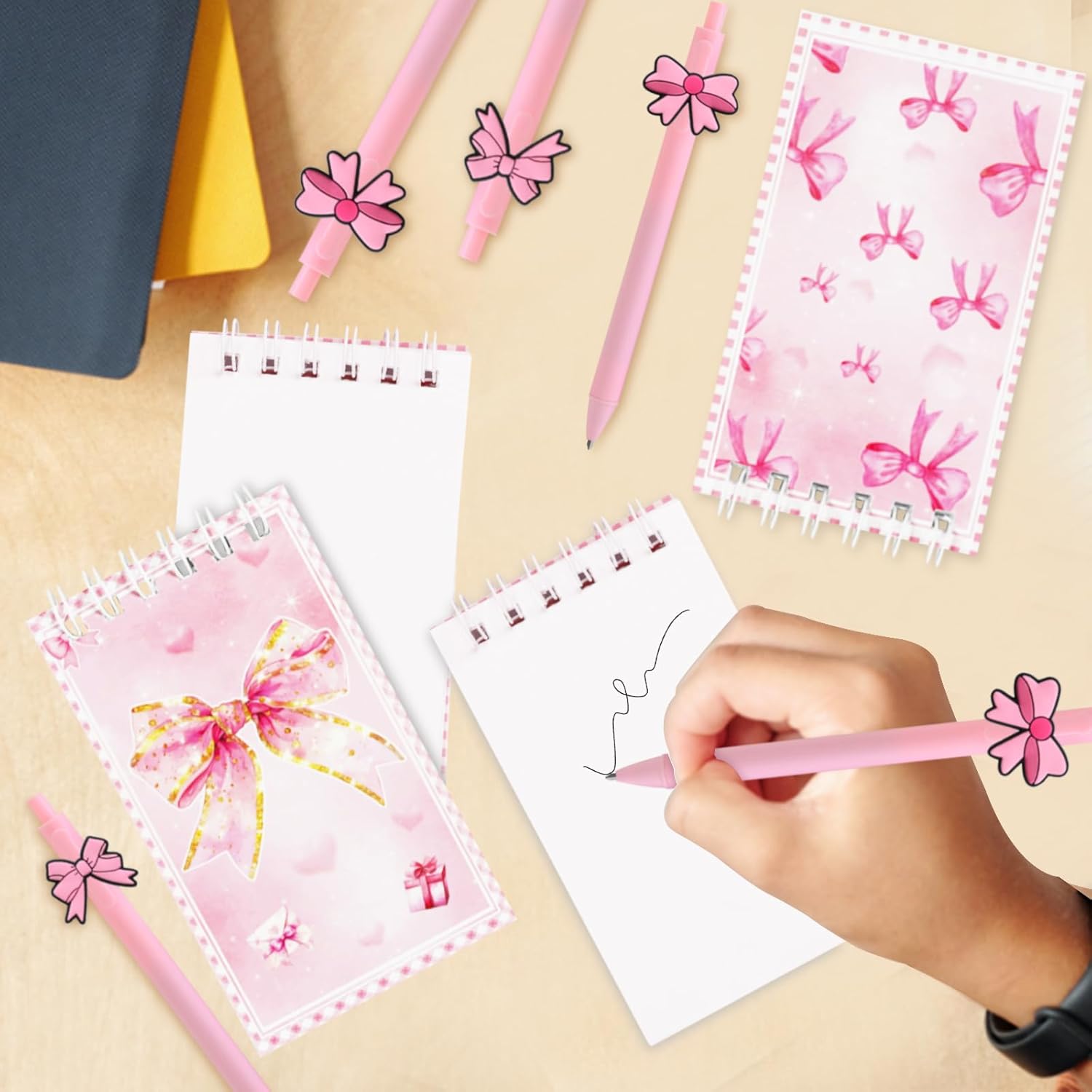 The pens write smoothly with stylish clips, the notebooks are the perfect size for purses or pockets, and the gift bags are great for candy, trinkets, or party keepsakes. All items coordinate in a charming pink bow theme—ideal for girls, tweens, or anyone who loves cute, aesthetic accessories.