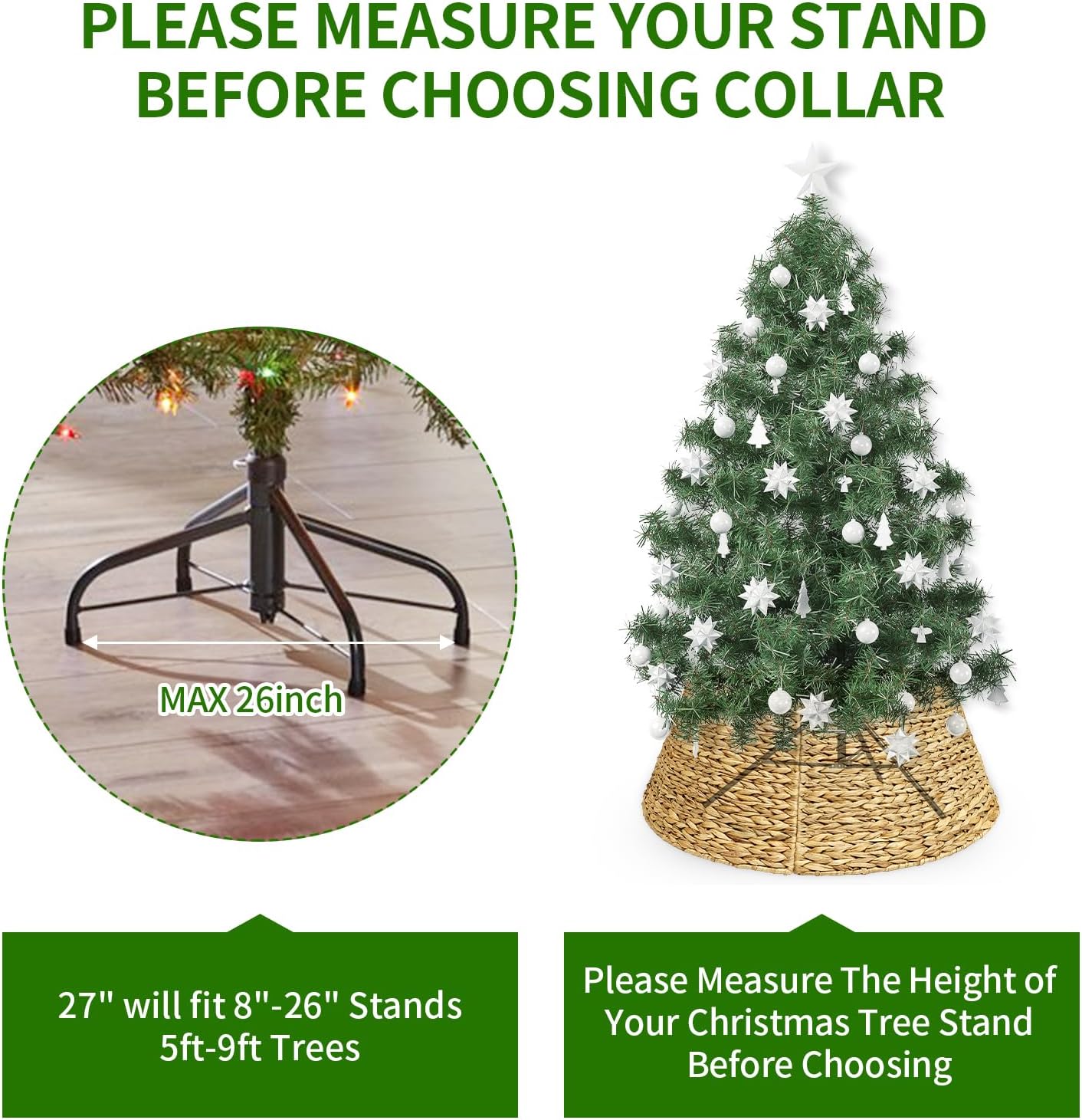 Elegant Design: Dress up for your Christmas tree by using this woven tree collar, made of natural water hyacinth with a metal frame. unique shape more decorative, add a touch of elegance and fashion for Christmas, suitable for a variety of room styles