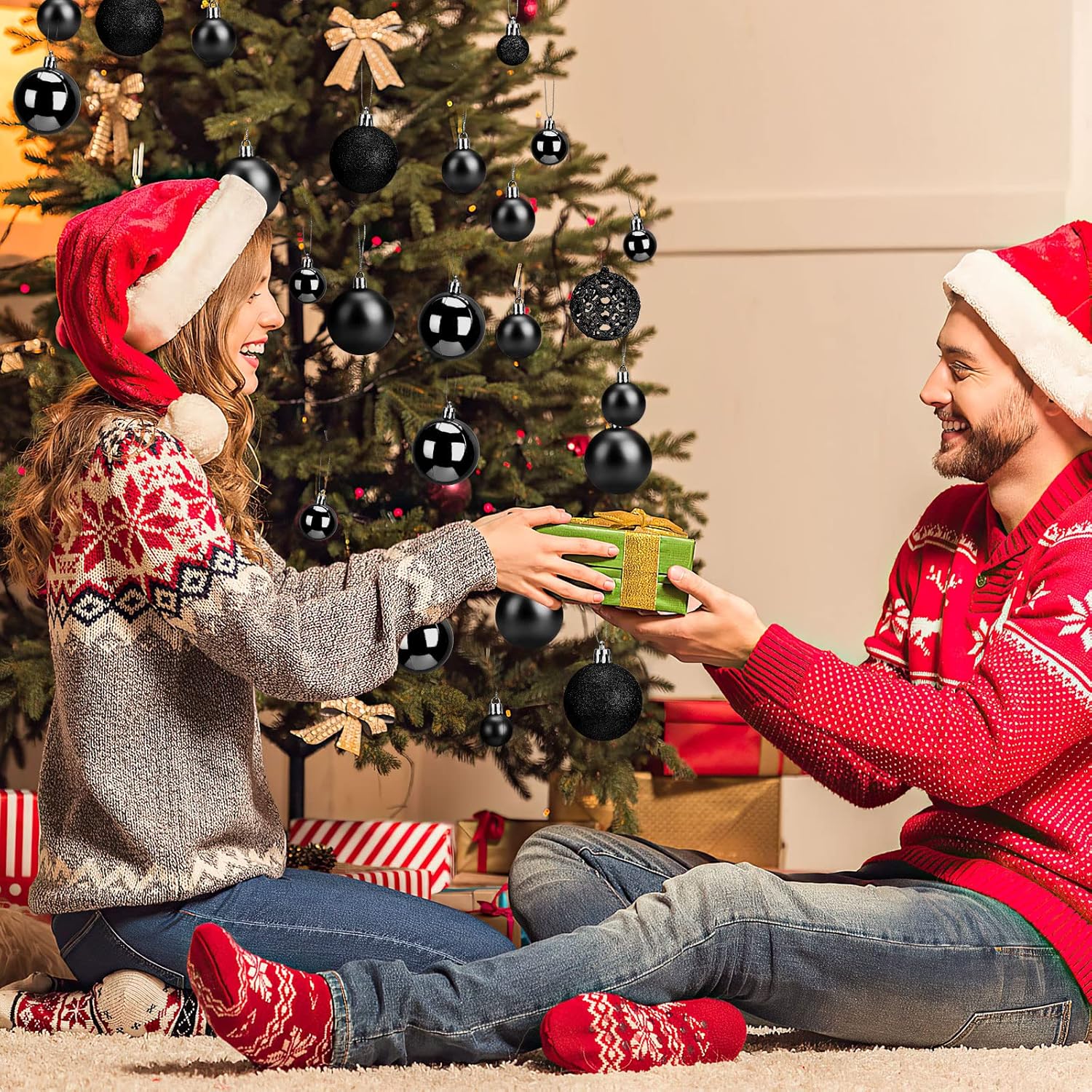 Aitsite 100 Pack Christmas Tree Ornaments Set Mini Shatterproof Holiday Ornaments Balls for Christmas Decorations (Black)