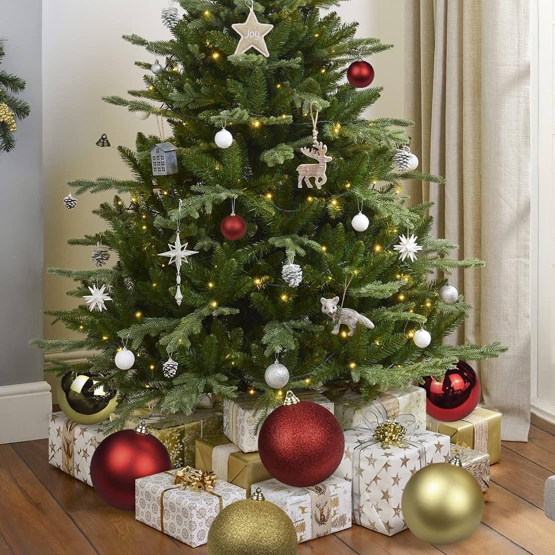 – Features: Huge Christmas ornaments include 4 styles: shiny, matte, glitter, and drenched. Christmas bulbs ornaments excellent shatterproof performance, with a high-quality paint on the surface, not easy to fade, with a detachable hook cord for easy use, shatterproof Christmas ornaments suit for outdoor hanging