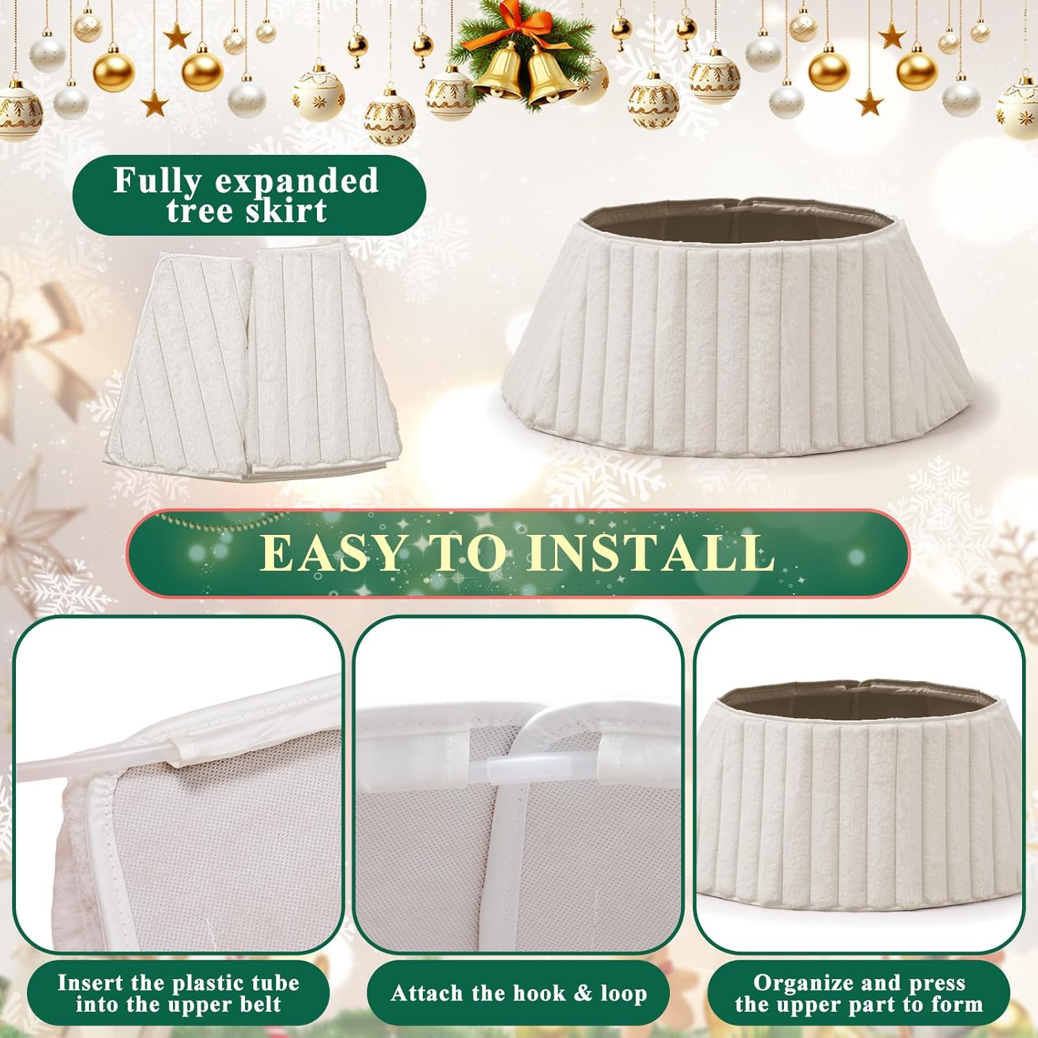 Easy To Assemble and Storage: This plush tree base basket featurings a unique design with 11 panels, no need tools, connect these panels with velcroes just a few minutes, and our faux fur Christmas tree collar is with 1pcs pipe for the top, ensuring keeping your tree standing tall. It can also be quickly disassembled and stored after the holidays without taking up too much space