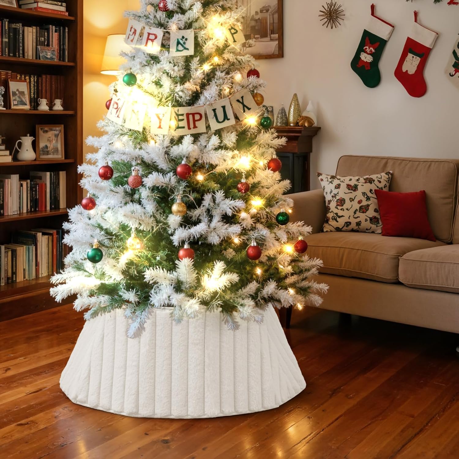 Size: The decorative tree collar is 60cm/24inch (bottom diameter), fit in most Christmas tree stands. Its sturdy, tailored design enhances stability while giving your tree a clean, polished look all season long. This plush Christmas tree skirt will create a harmonious, warm and enchanting atmosphere for your Christmas celebrations, perfect for living room, bedroom, garden, bar, hotel, supermarket, businesses, boutiques, woodland, farmhouse