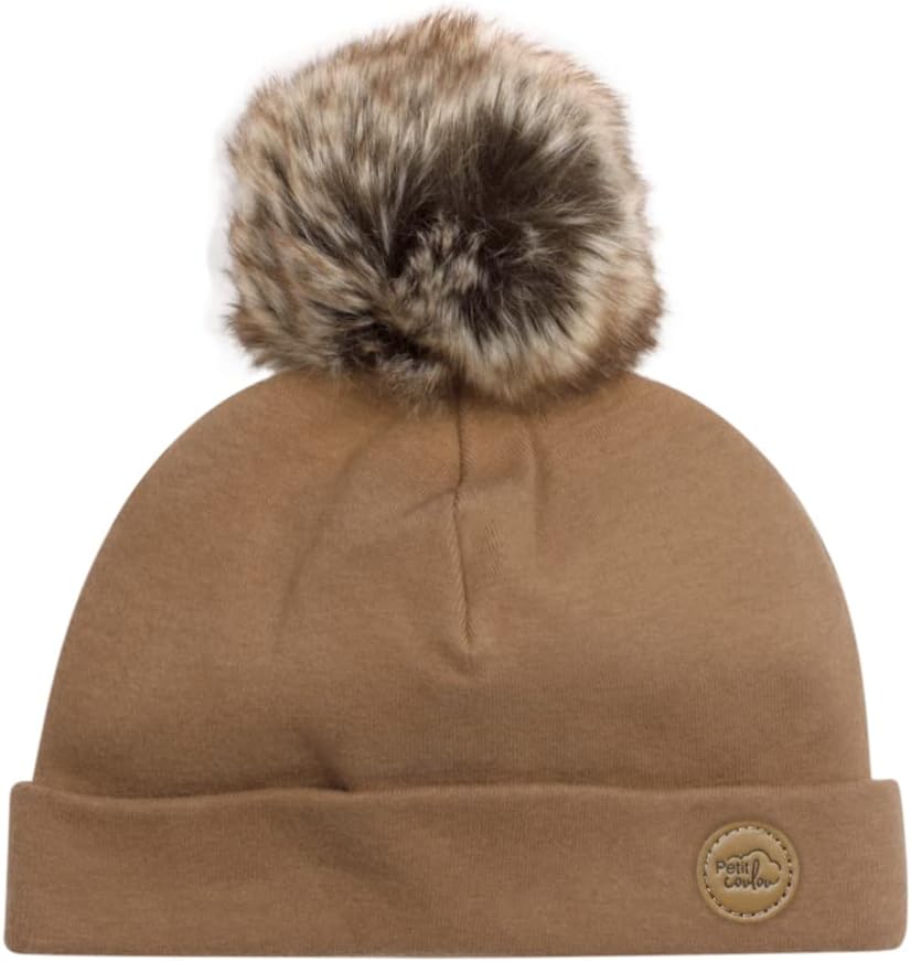 Adorned with a signature vegan leather Petit Coulou patch and a cute high quality synthetic fur pom-pom.