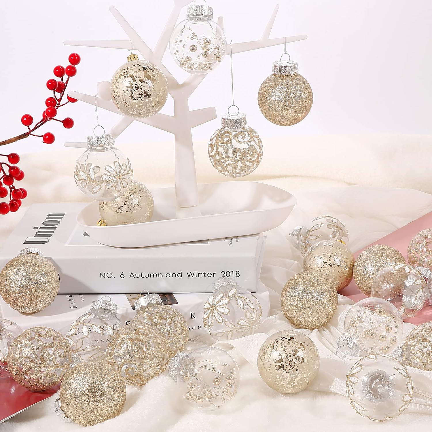 SUPREME XMAS 60mm/2.36inch Clear Christmas Ornaments Set, 30ct Champagne Balls for Tree Decorations Shatterproof Transparent Baubles with Stuffed Decoration Wedding Party