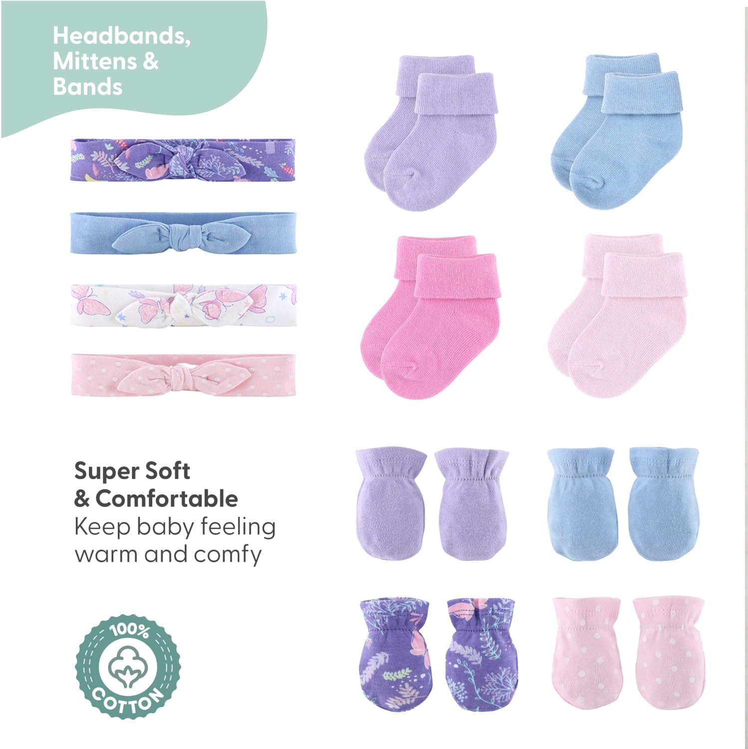 Transform your little one’s wardrobe with the Butterfly Bliss 30-piece layette set by The Peanutshell. This extensive collection has everything you need to dress baby in adorable fashion from head to toe. From onesies to rompers, socks, headbands, bibs and pants, this set offers a wide variety of options for your little bundle of joy. Each piece is crafted with utmost care using soft and gentle fabrics to ensure maximum comfort for baby’s delicate skin. With a colorful assortment of lavender, pink and periwinkle, your social butterfly is sure to melt hearts everywhere she goes. Every item in this set exudes enchanting sweetness; from the butterflies tossed amid celestial and woodland elements, to a classic light pink pin dot. Mix and match to create endless adorable outfits and keep your baby girl stylishly cozy throughout the day.