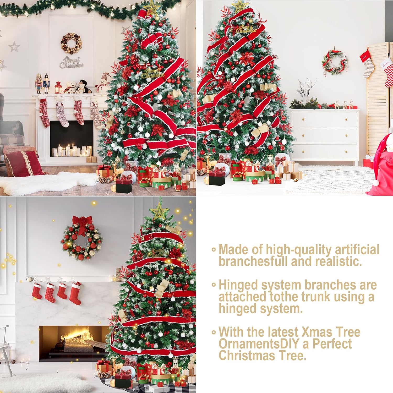 Classics Red, Gold and White Christmas Tree Ornaments: Enjoy this fashion decoration set to give your home a festive, cohesive look for the holidays.Customizing your tree with ribbon,snowflake,ball ornaments, and more!The warm festive atmosphere fills the house. There are various accessories available for DIY, please refer to the video.