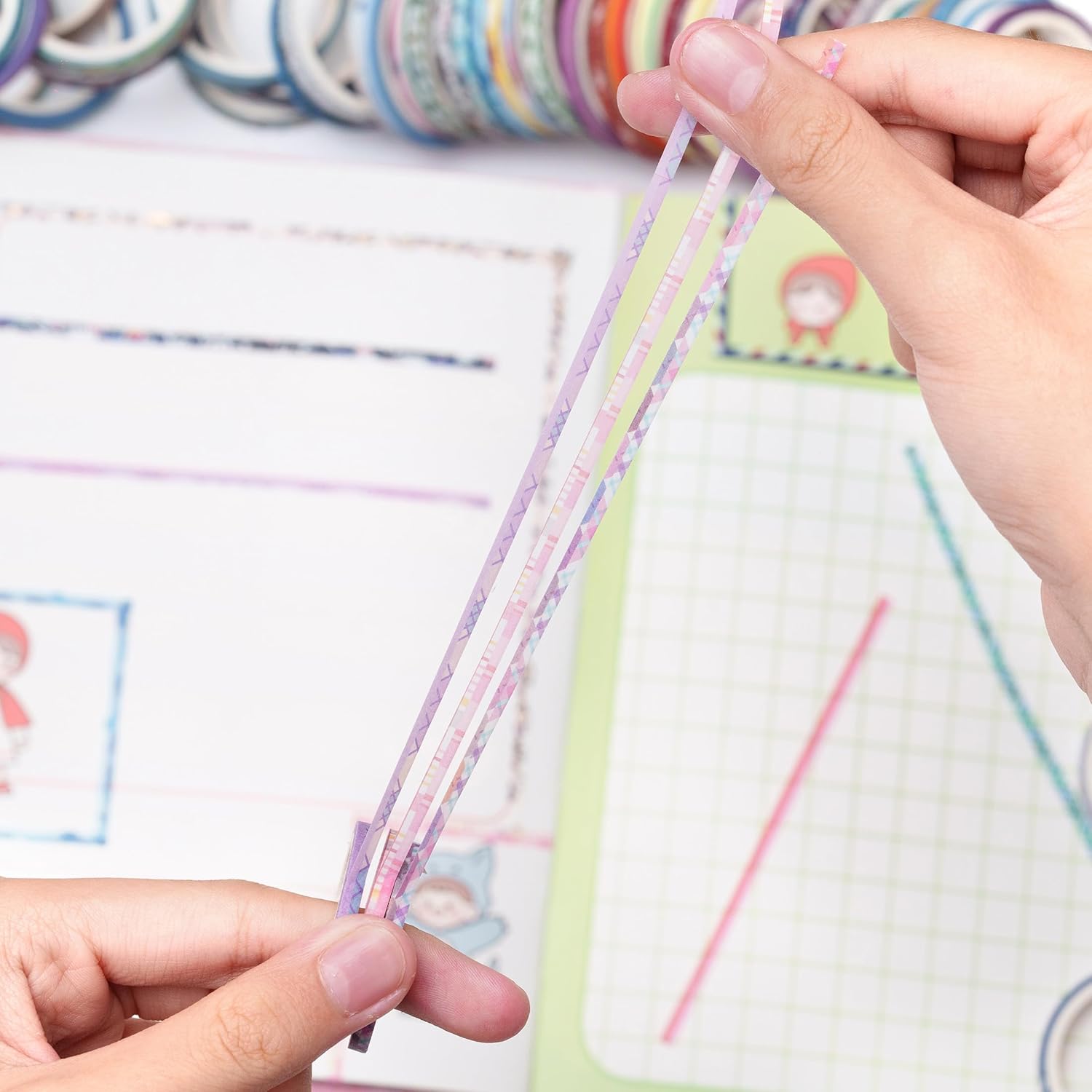 MULTI-FUNCTION: The washi tape is a great way to your planners, scrapbooks, bullet journal, embellishments, card making, gift wrapping, parties, DIY craft project, decor, lipsticks box, pencil box, pens, charge cable, spoon handle, etc.