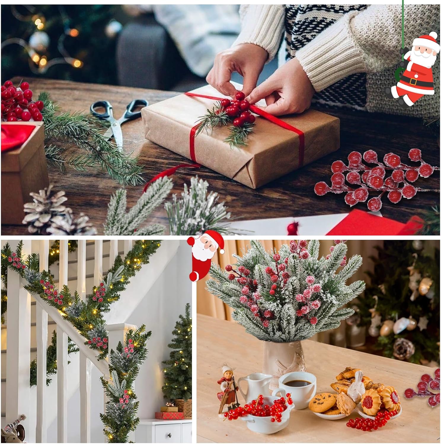 Widely used: Christmas artificial frosty pine stems, holly berry stems can not only be used as DIY wreaths, craft accessories, Christmas vase filler, etc., but also very suitable for decorating and embellishing the Christmas tree, fireplaces, doors, windows, walls, staircases, dining tables, etc., to add more warm and elegant festive atmosphere to your home