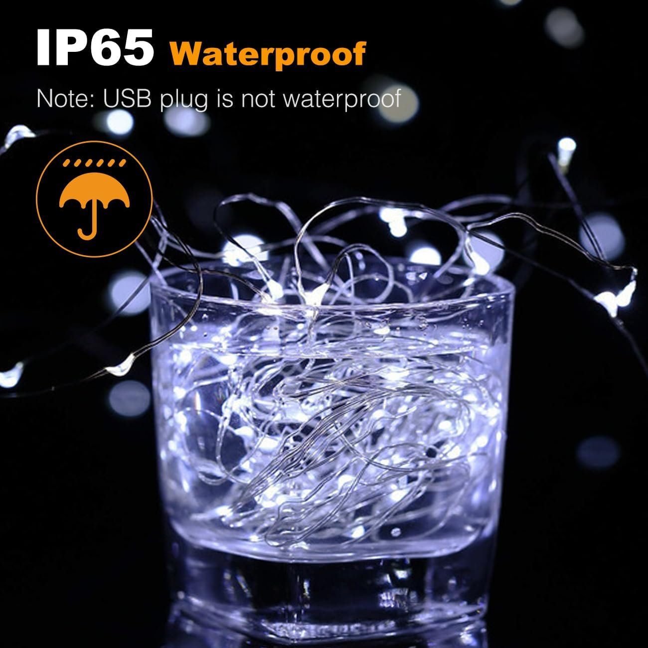 【Waterproof】Fairy lights are waterproof and can be used in wet environments. Warm tips: the USB is not waterproof, don’t put it in water.