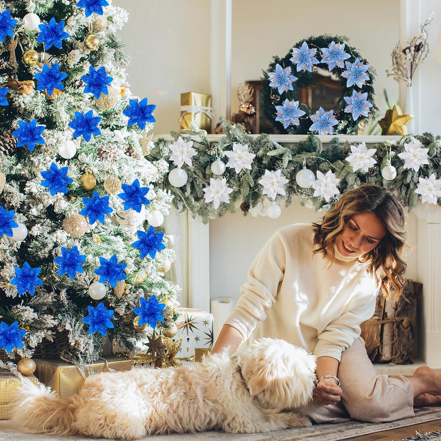 DURABLE MATERIAL: The MIKAILE Christmas Flowers Artificial with Clip are made of durable plastic, and covered with beautiful glitter powder. These jaw-dropping ornaments will decorate your luxurious Christmas tree.