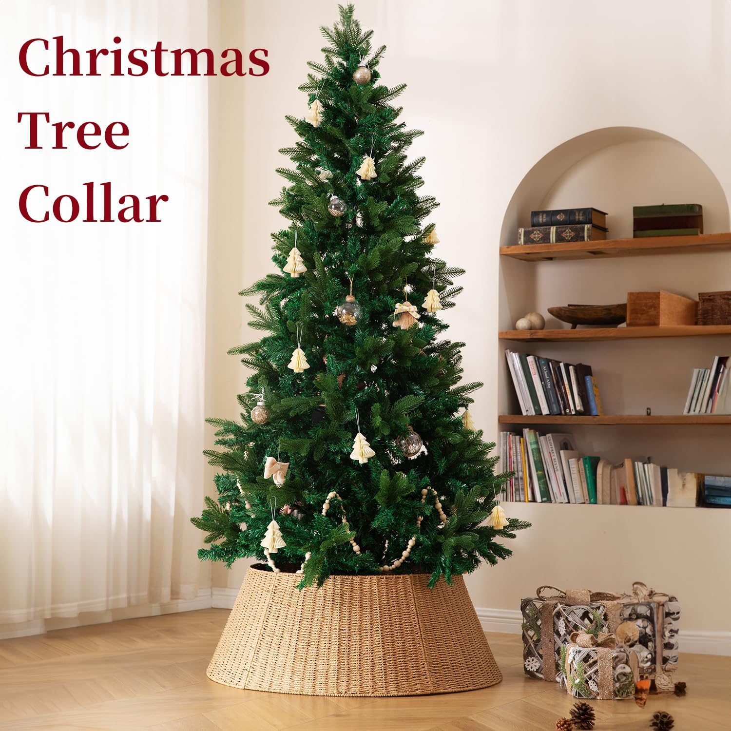 Handwoven Wicker Christmas Tree Basket for Tree Base Cover Collar for 7.5-12Ft Artificial Trees Features: Handwoven Craftsmanship: Our Christmas tree skirt collar is meticulously handwoven from high-quality wicker, providing a natural and rustic look that enhances your holiday decor. Durable and Maintenance-Free: This tree collar is a long-lasting alternative to traditional tree skirts. It hides the base of your artificial tree without the need for washing or ironing. Advantages: Rustic Charm: The natural wicker material and handwoven craftsmanship add a beautiful, rustic touch to your holiday decor, making your Christmas tree stand out. Hassle-Free Maintenance: Unlike traditional tree skirts, our tree basket base cover does not require frequent washing or ironing, saving you time and effort during the busy holiday season. Child and Pet Safe: Provides a practical solution to keep curious pets and children away from the tree base, ensuring a safer holiday environment. Benefits: Enhances Holiday Decor: The handwoven wicker design adds a touch of rustic elegance to your Christmas tree, creating a warm and inviting atmosphere in your home. Saves Time and Effort: With no need for washing or ironing, you can focus on enjoying the holiday season rather than worrying about maintaining a traditional tree skirt. Protects Loved Ones: Acts as a protective barrier to keep pets and children safe from the tree base, providing peace of mind during the festive period. Evidence: Customer Satisfaction: Many of our customers have praised the high-quality craftsmanship and beautiful design of our tree collar. The upgraded Hook and Loop connectors have been highlighted as a convenient feature that simplifies assembly and storage. Durability: Made from high-quality wicker, our tree stand cover is built to last for many holiday seasons, offering a durable and stylish alternative to traditional tree skirts.