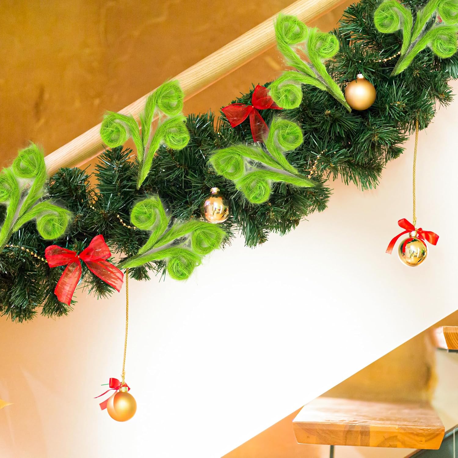 Ideal Christmas Tree Decorations: Our fun Christmas tree fillers are designed with green and furry Christmas picks that are easy to install. They also cater to your DIY needs, you can easily decorate your Christmas tree, Christmas vase, Christmas wreath, or Christmas garland with these grinchmas-style curly stems