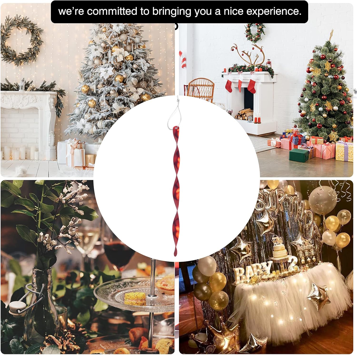 24 pieces of 9.8 inches long hanging ornaments packed in a gift box. Made of high quality Aluminum material,hand twisted in shape. Finished by green electroplating process to make the ornaments in pretty shape and good quality. Featuring a combination of exquisite Icicle looks and light weight with a hanging string for easily hanging, bring you a nice holiday decorating experience. Liven up your tree by adding these sparkling ornaments, enjoy the enchanting atmosphere with family and friends!