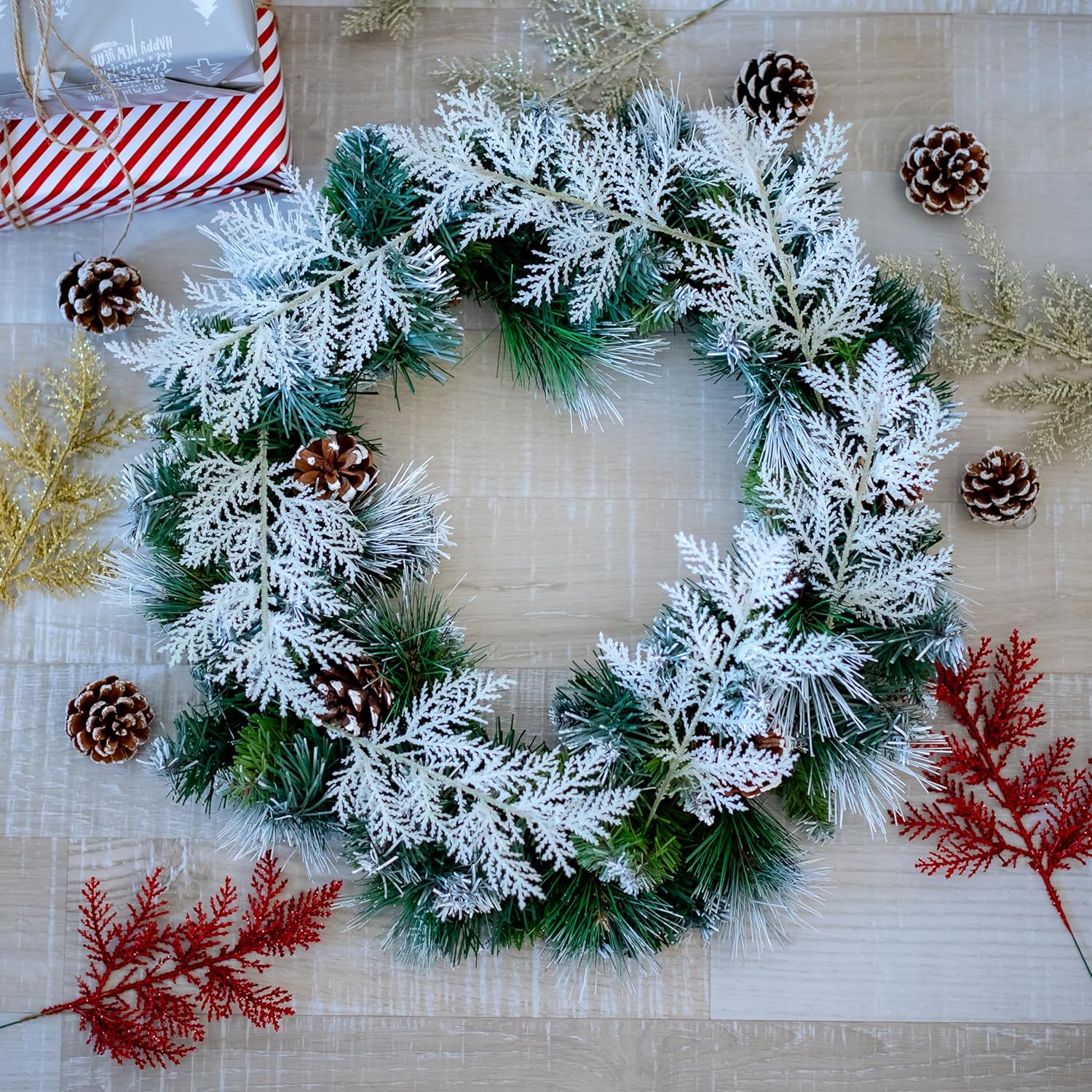 Package and Usage: Package contain 30 pcs artificial cedar sprigs, size 10.8 Inches, come with glitter powder on the surface, they are perfect for making pine tree decor, fireplace, pine garland, pine wreath, Christmas table, pine branches with berry and pine stems.