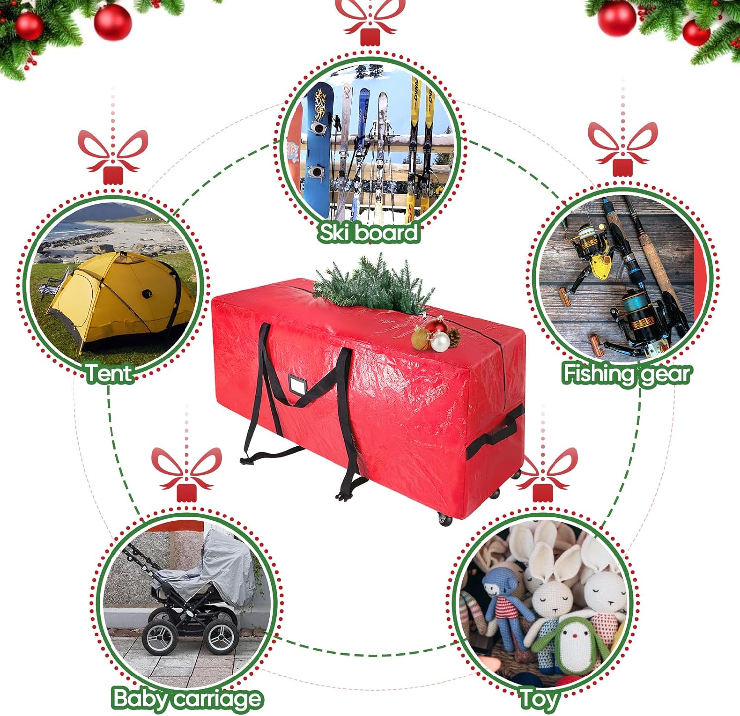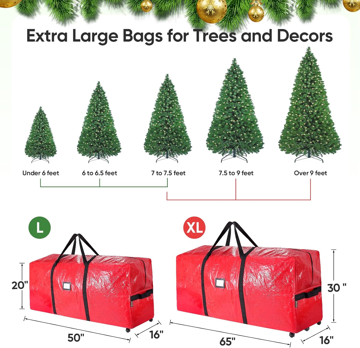 [INNOVATIVE WHEELED DESIGN] Designed for convenient mobility, the 50” Christmas tree storage box features 2 swivel wheels, while the 65” version has 3 wheels. This makes moving your storage bag much more convenient and less labor-intensive compared to non-wheeled options. The two side handles are also optimized for enhanced portability.