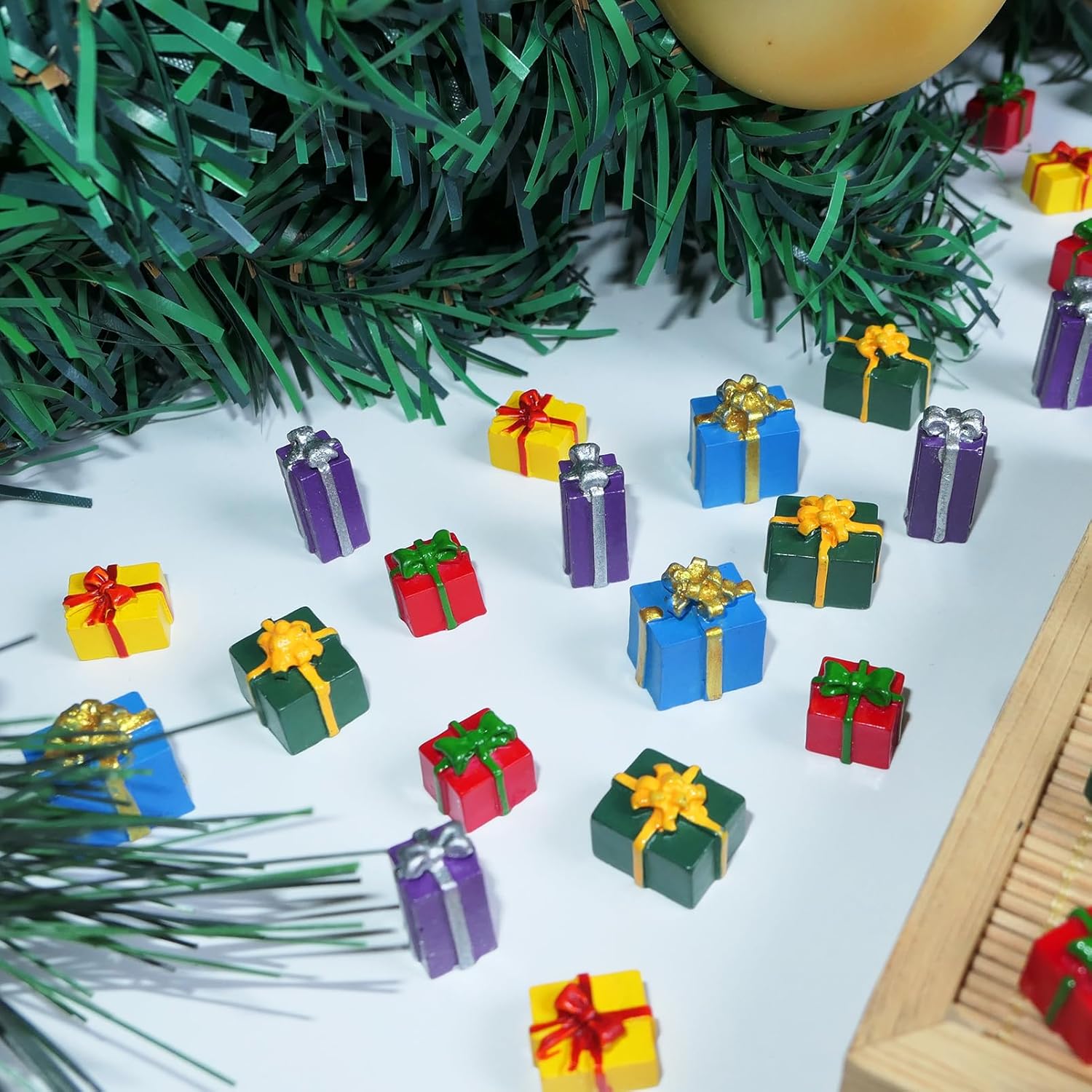 Christmas Miniature Gift Boxes Ornaments,60 Pcs Christmas Tree Mini Resin Presents Charms for Craft Dollhouse and Xmax Mini Decorations
