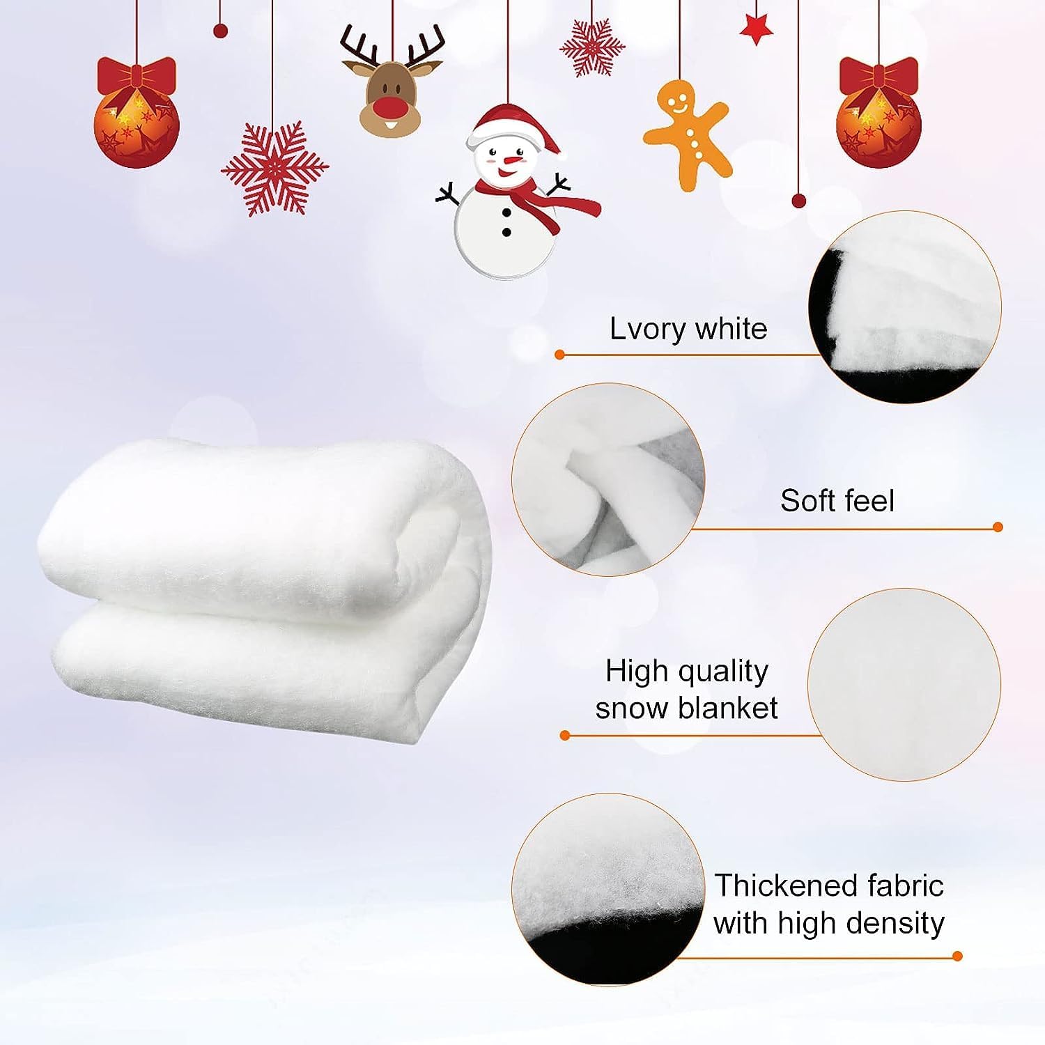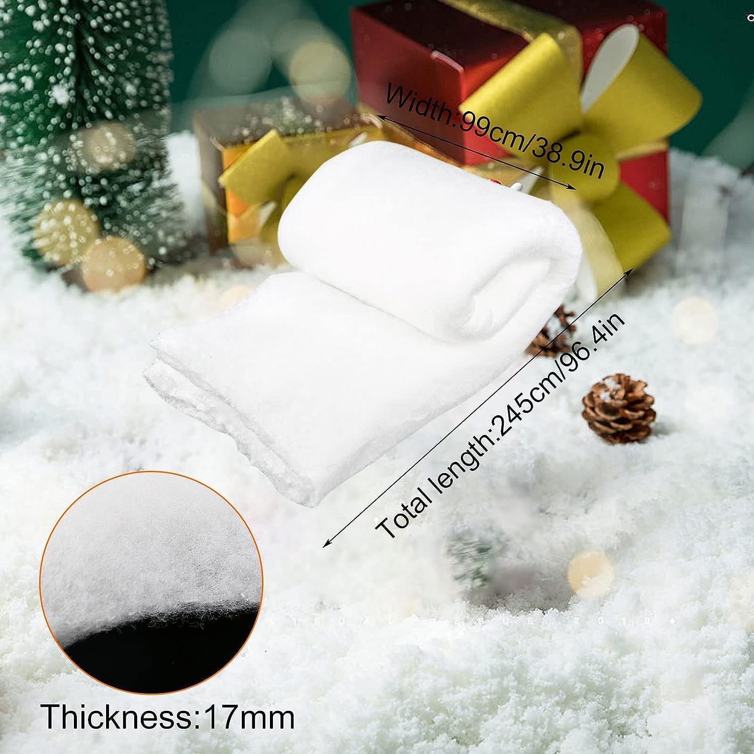Includes: 2 thick roll of artificial snow blanket, perfect for Christmas tree and village decorationSize: Each snow blanket measures 3.25 x 8.0 feet (39 x 96 Inches, 100 x 243 cm), long and thick enough making it perfect to play and style to your desired decor needsEach blanket covers about 30 square feet and is 0.7 inches thick, perfect for snow village, decorative snow scenes and backdropsAdd that Christmassy and wintry feel and accent to your Christmas tree, village displays and holiday decorationSafe Material: Made of flame-retardant, and non-toxic material