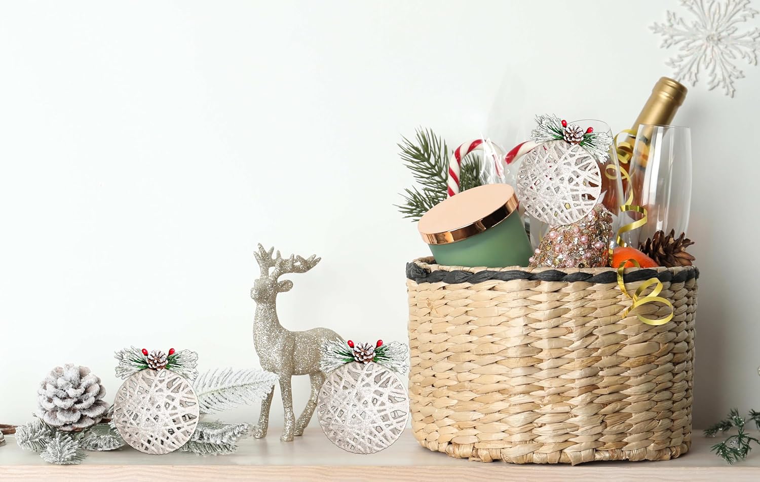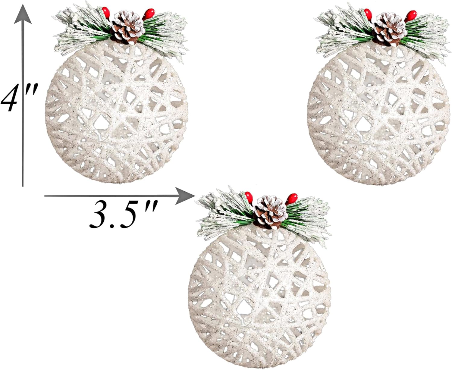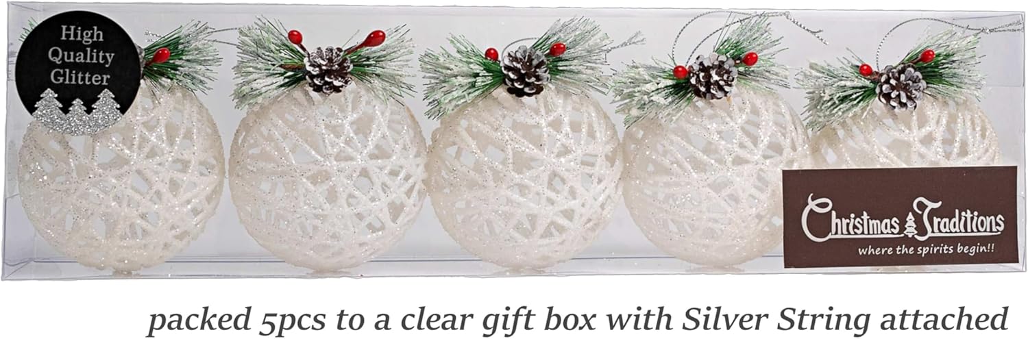 Christmas Traditions 4 inch Glittered Rattan Christmas Ball Ornaments Hanging Tree Decorations (Set of 5)