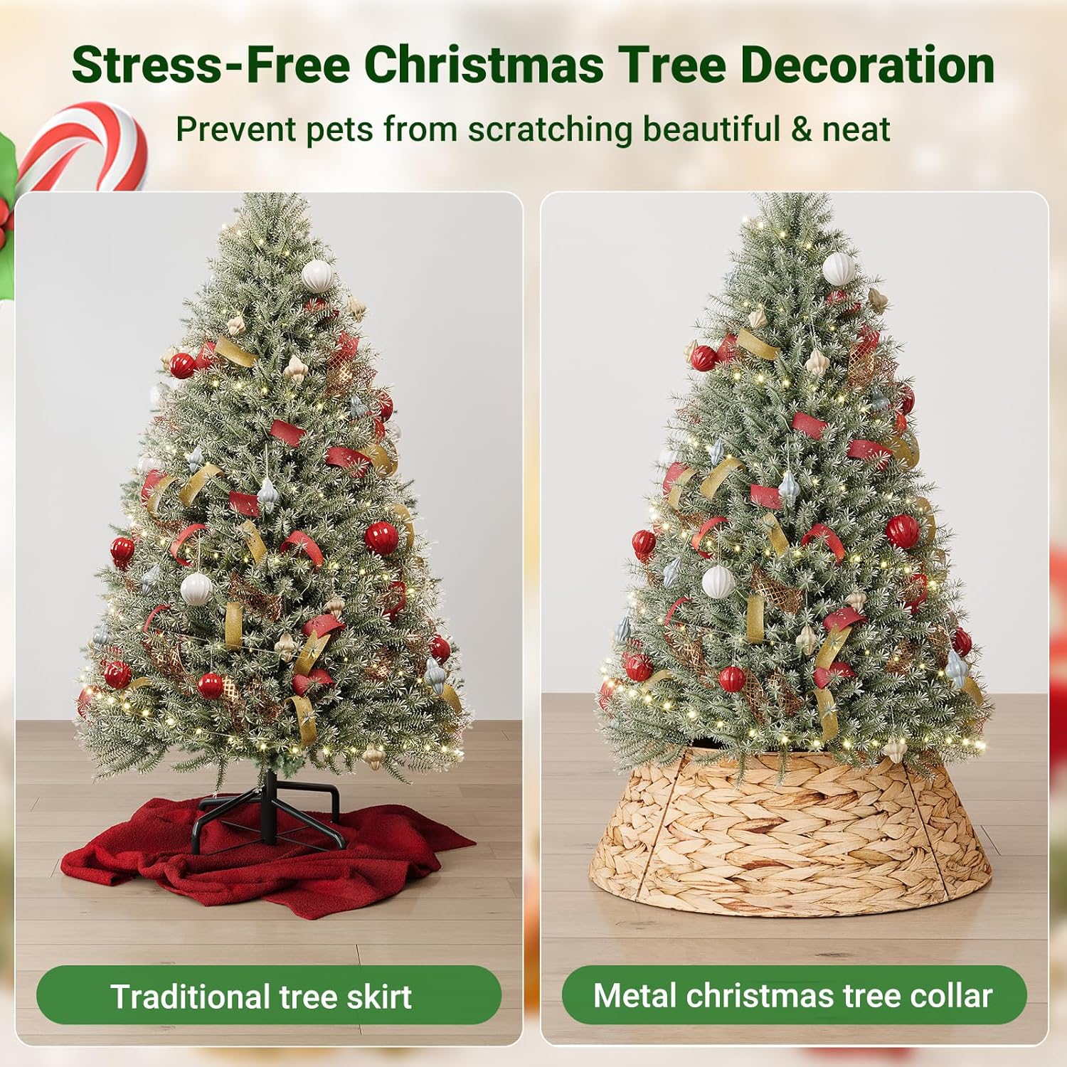 Quality Material: Elevate your holiday decor with the rustic charm of our rattan tree collar. Featuring a beautiful braided pattern and a tapered silhouette, it’s crafted from natural water hyacinth. Built on a robust metal frame, this collar not only offers style but also durability, showcasing your commitment to the environment
