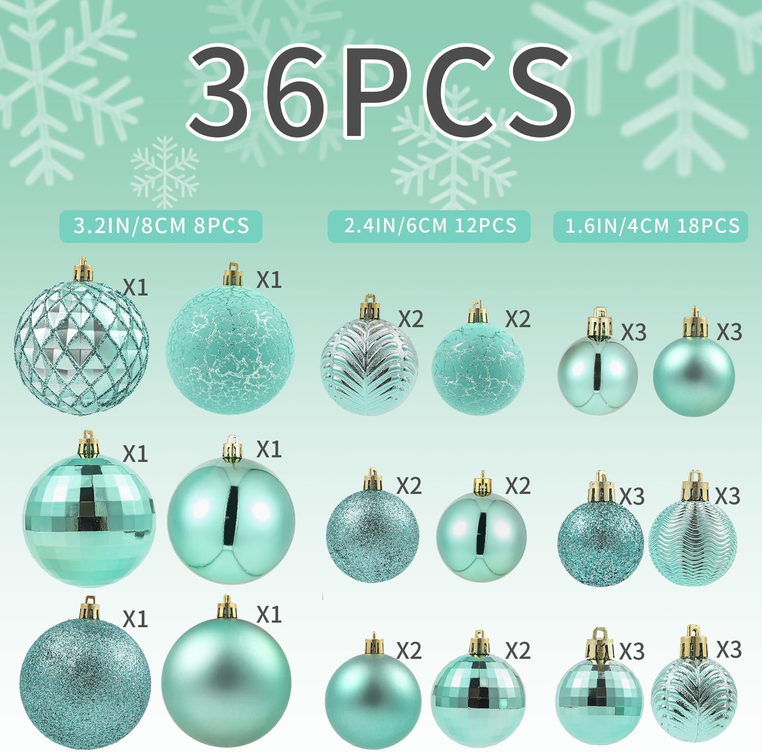 Perfect Variety – With 3 sizes and 18 different styles, the LANGXUN Christmas ornaments set includes a total of 36 balls. This set features 8 balls measuring 3.2 inches, 12 balls measuring 2.4 inches, and 18 balls measuring 1.6 inches.