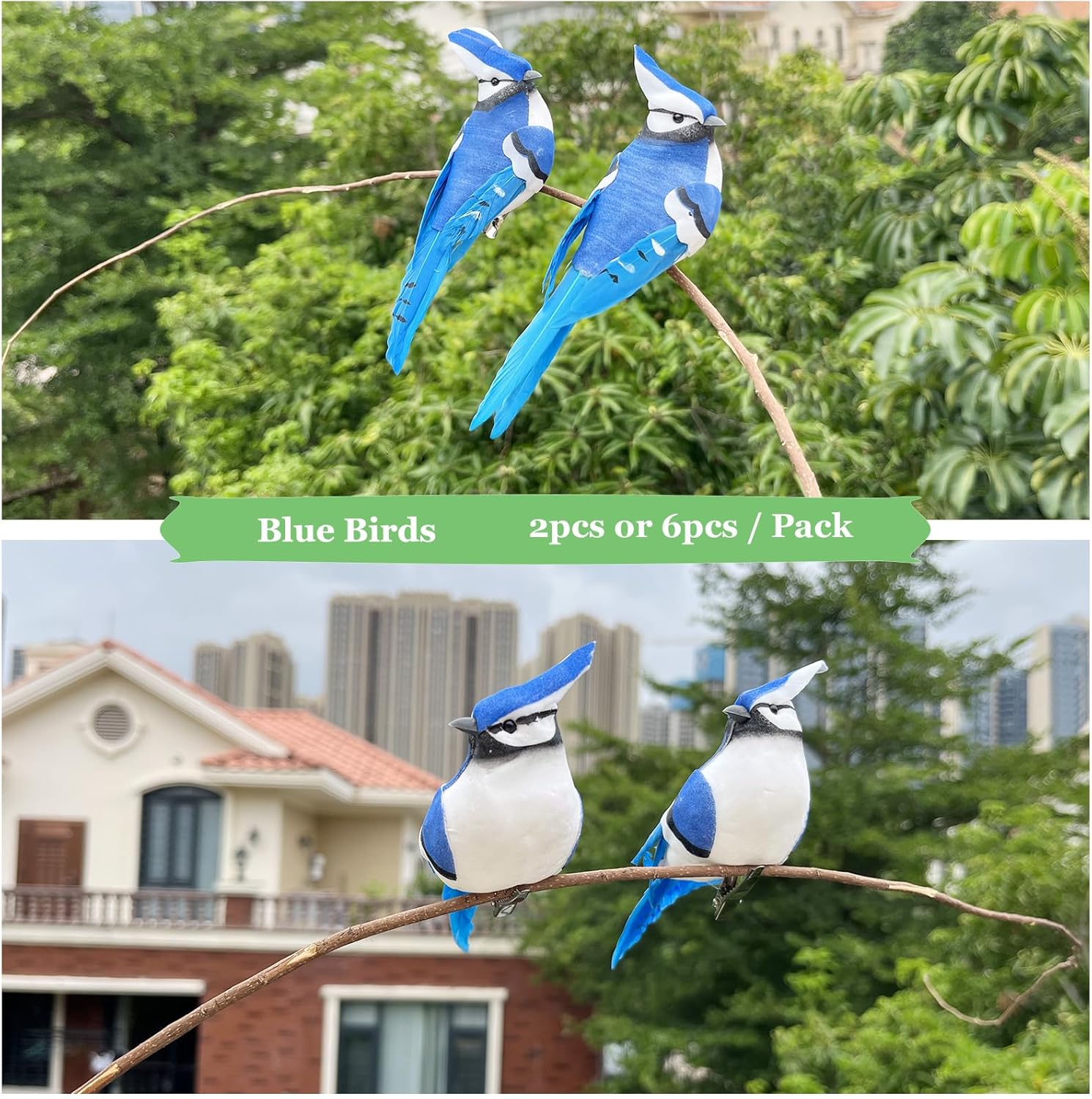 【Two Styles】 There are 2 styles blue jay birds, one with metal clip is easily attached anywhere firmly, and the other with claw and iron wire is more realistic. Choose the right style according to your needs.