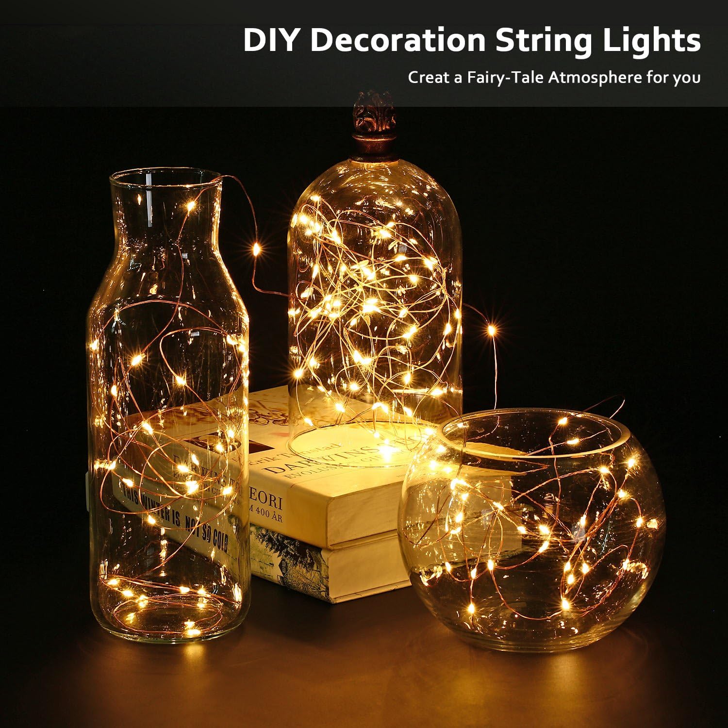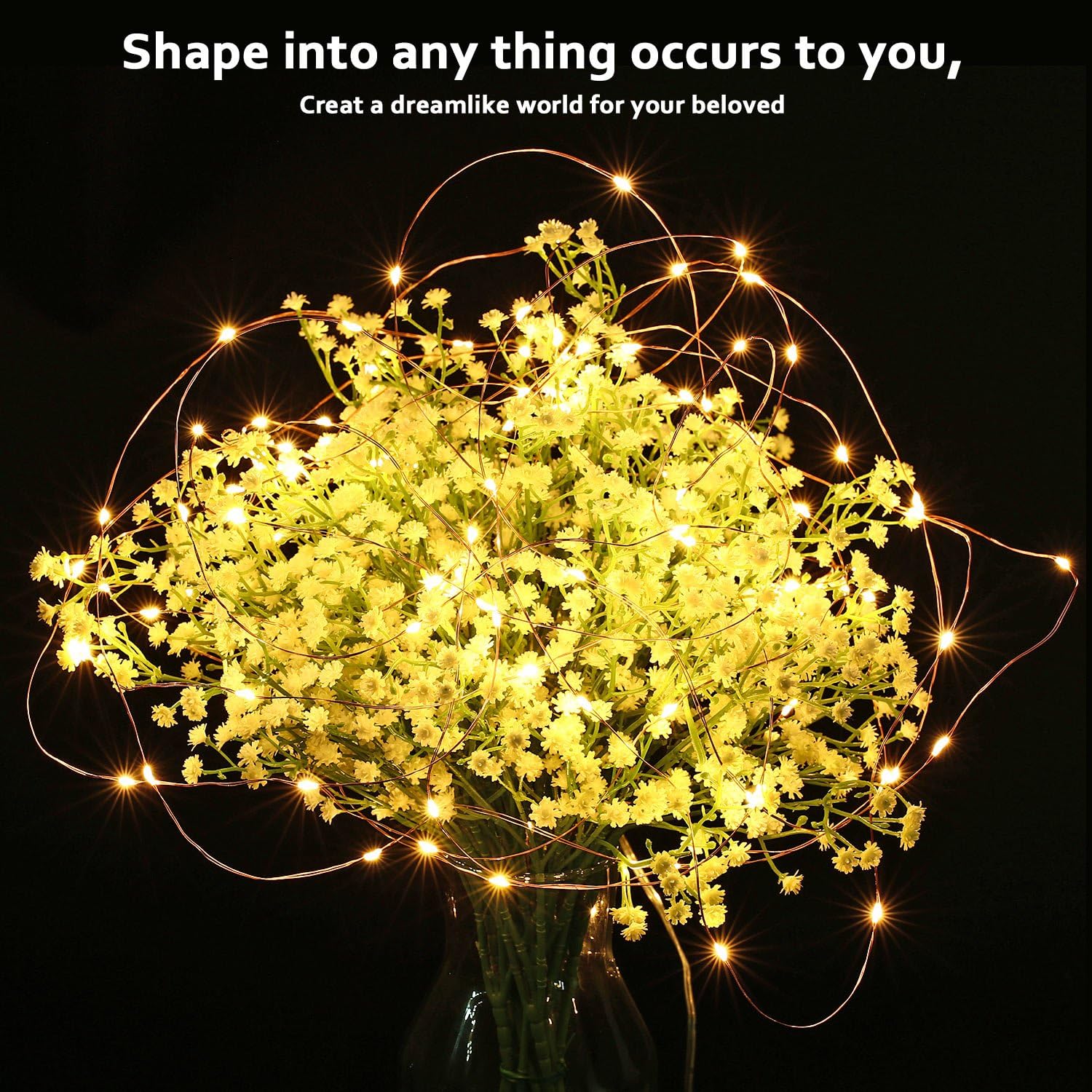 The copper wire string lights have good plasticity, you can DIY all kind of shape you want, to decorate Christmas, Valentine’s Day, Holiday, Wedding, Party and other Celebration Occasions.