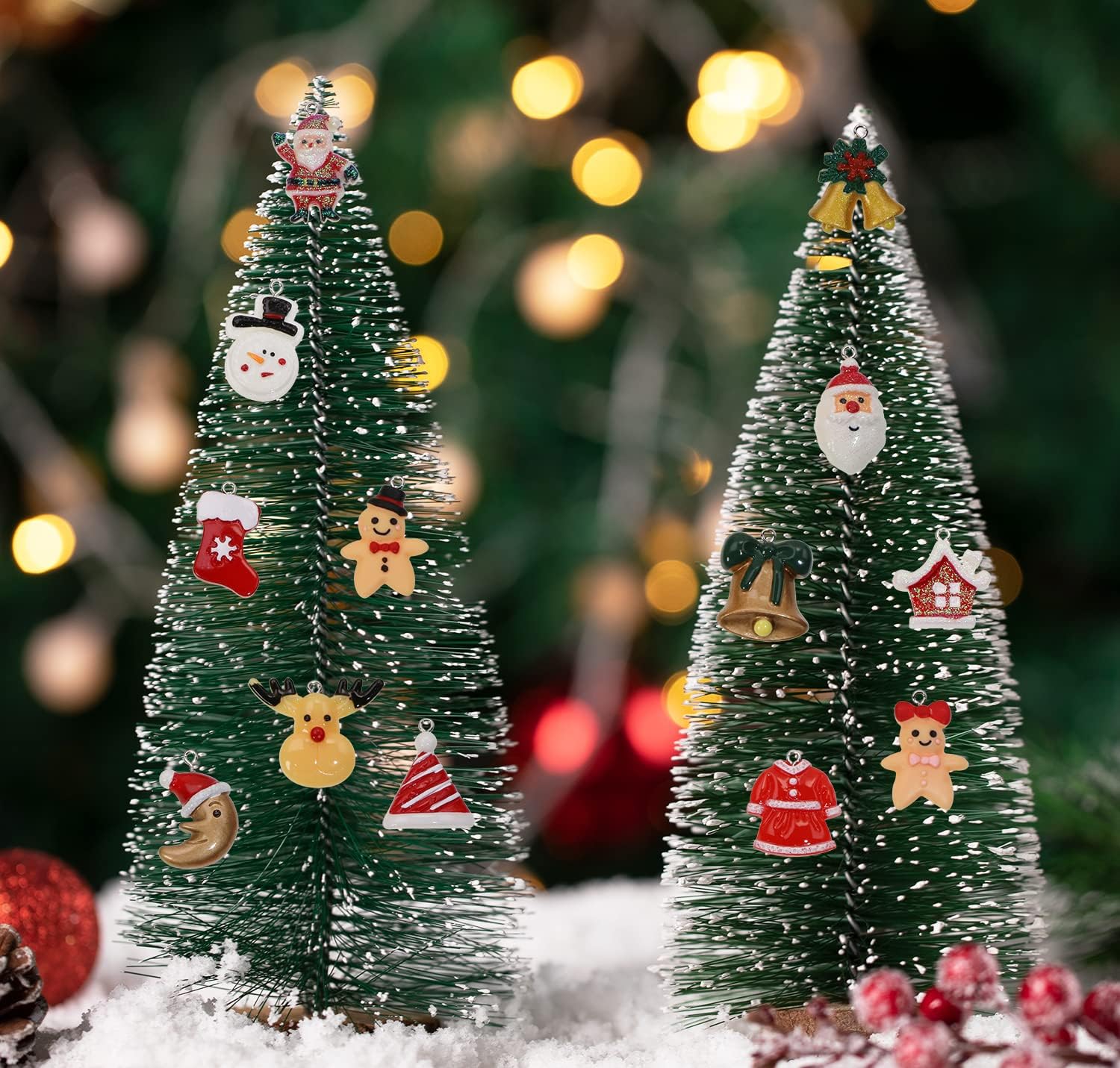 Package includes 20 pieces mini resin Christmas ornaments of different styles, such as Santa clause, Christmas tree, snowman, Santa hat, reindeer, gift box, jingle bell, etc