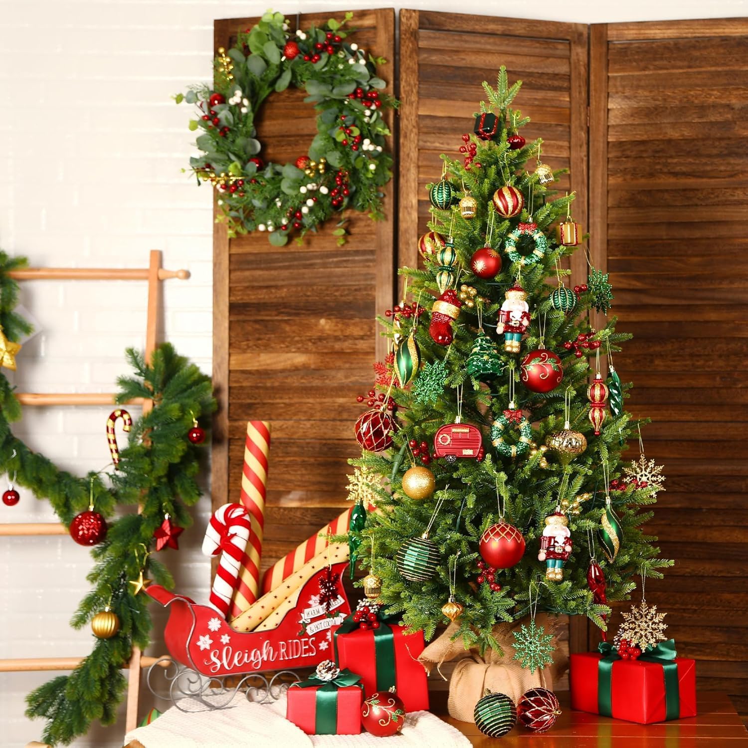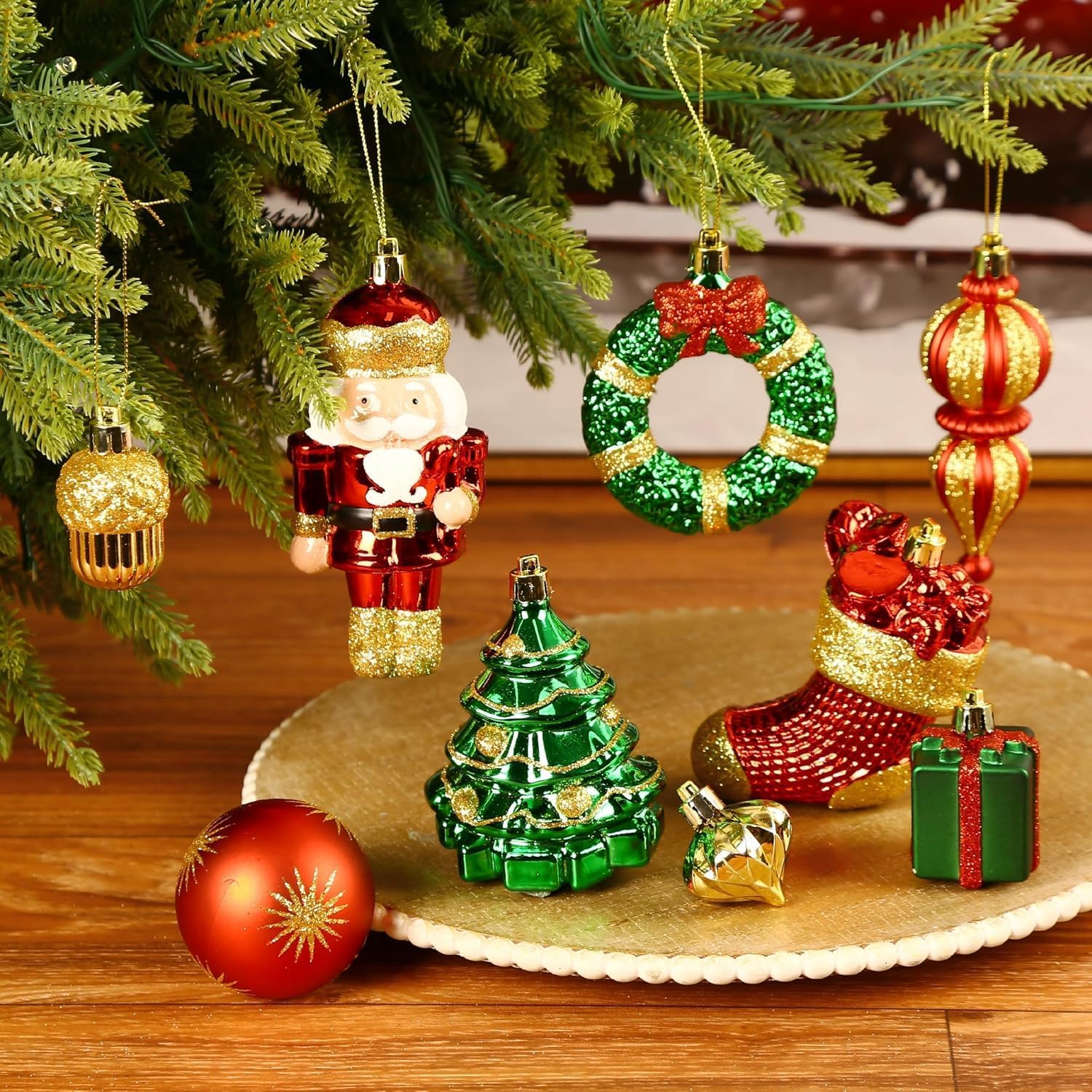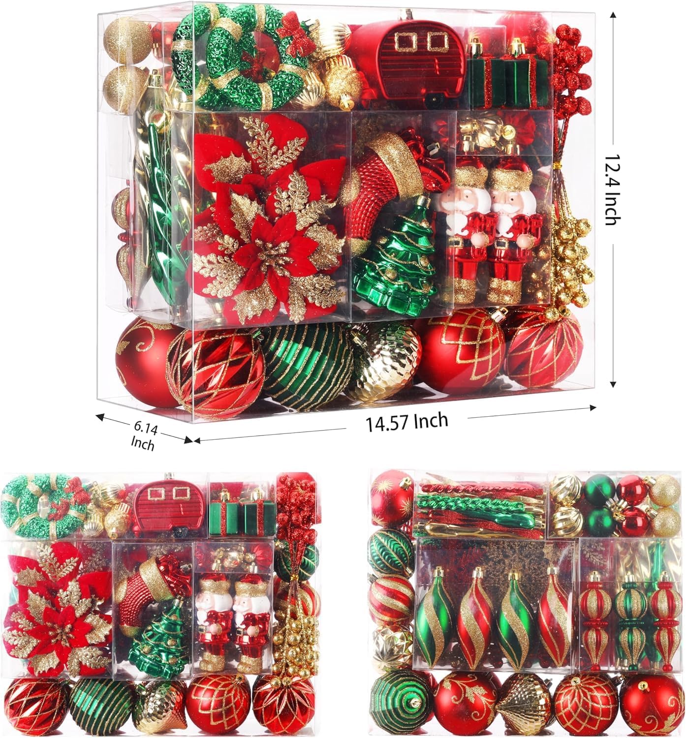 SHareconn 135pcs Christmas Balls Ornaments Set, Shatterproof Plastic Baubles for Xmas Tree Holiday Wedding Party Decorations with Hanging Strings, Red, Green and Gold